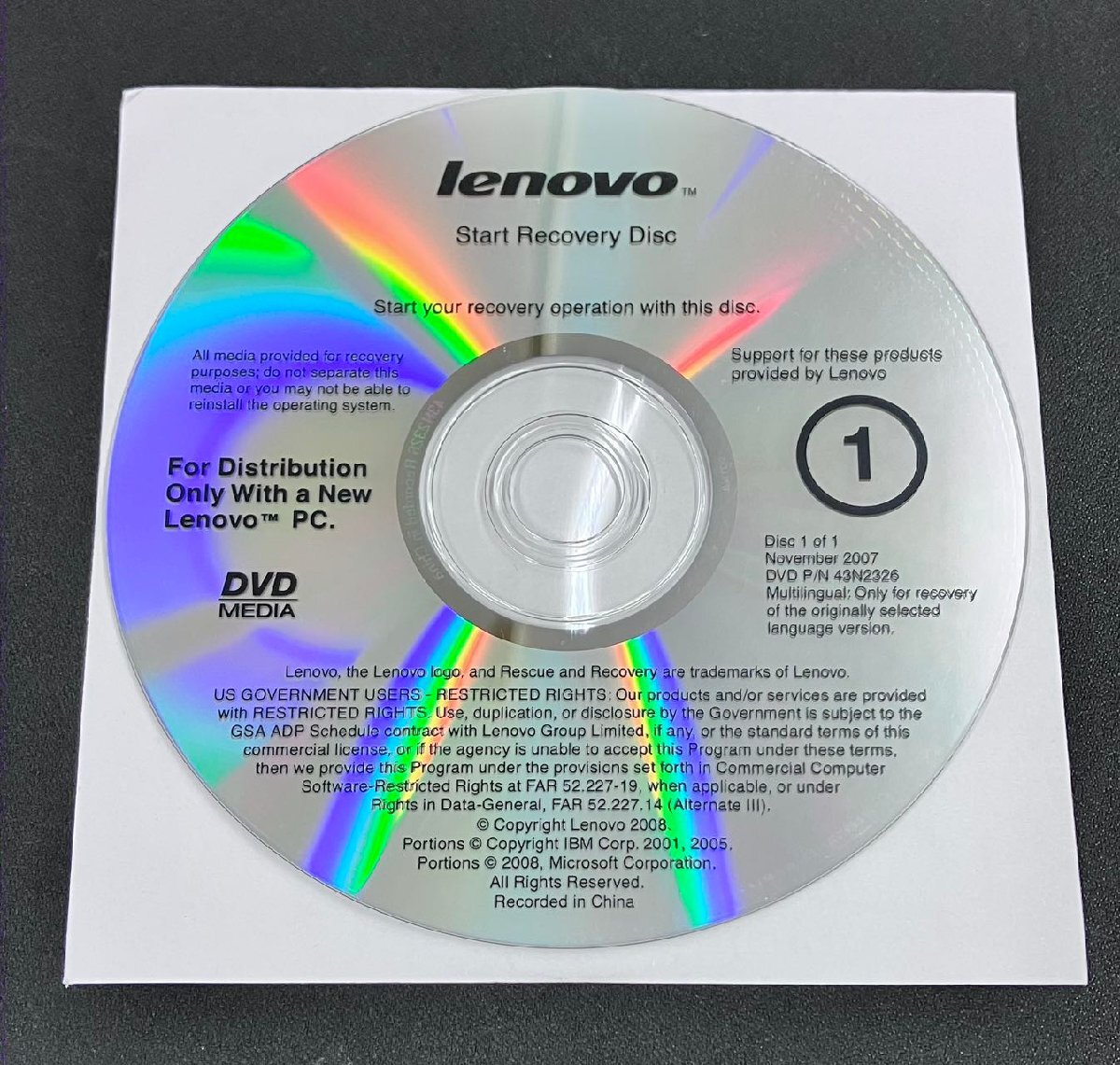 商品名 | Lenovo Start Recovery Disc P/N 43N2326 |