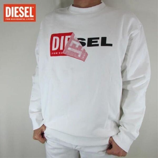 DIESEL [ディーゼル] メンズ スウェット トレーナー 白 めくり がれロゴ サイズXS 既に国内外で在庫薄!