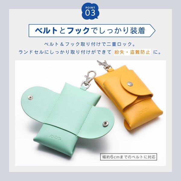 ベルトとフックの二重ロックでランドセルにしっかり取り付けができます。