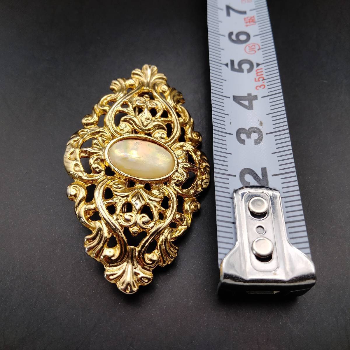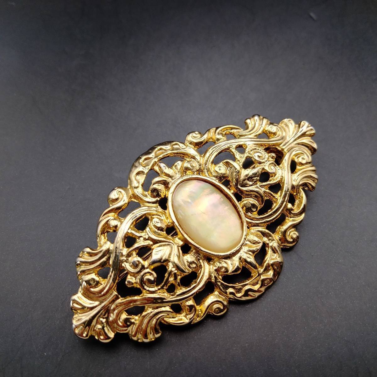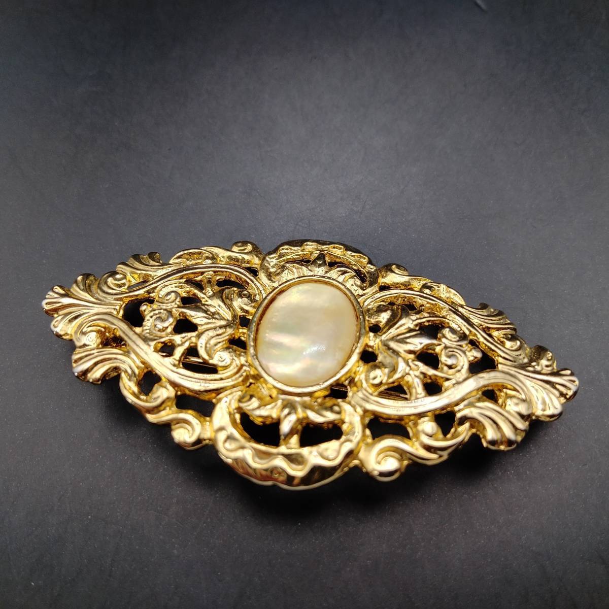 アールヌーヴォー 透かし 植物パターン ヴィンテージ ブローチ ゴールドトーン レトロ エレガント シェル調 装飾 AAO-1