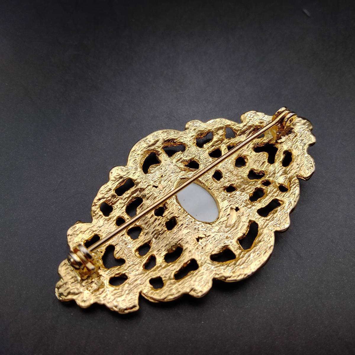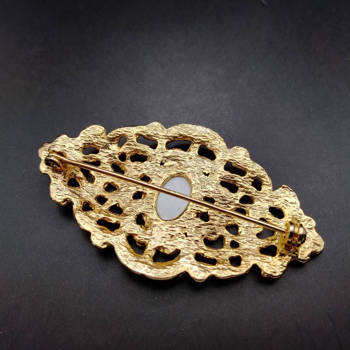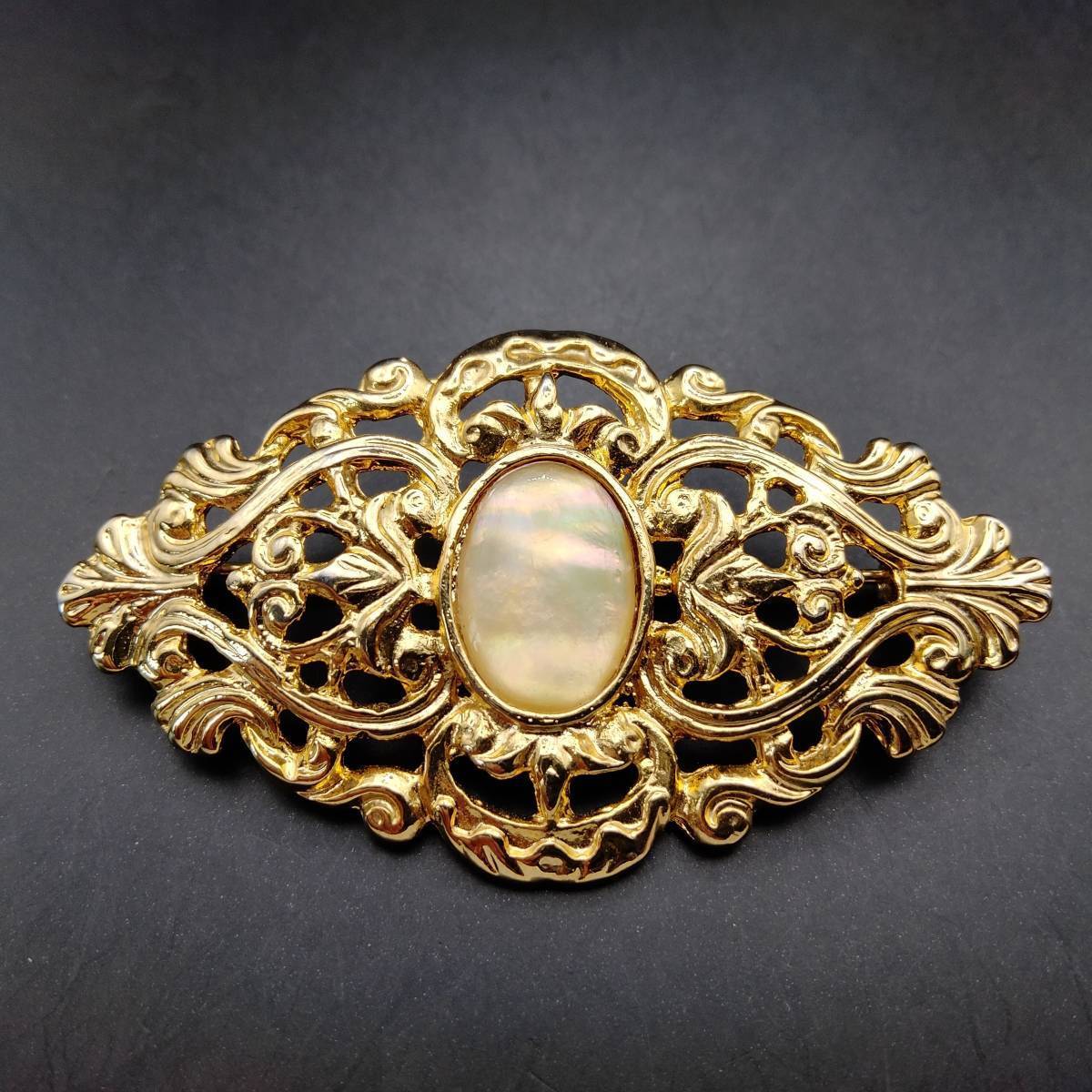 アールヌーヴォー 透かし 植物パターン ヴィンテージ ブローチ ゴールドトーン レトロ エレガント シェル調 装飾 AAO-1