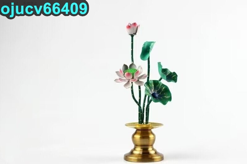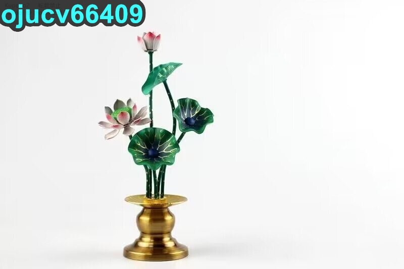 寺院用仏具 常花 左右1対 蓮花 花びん付き 仏花 法要 枯れない 仏壇 仏壇用 飾り お供え 仏教芸術品 高さ21cm