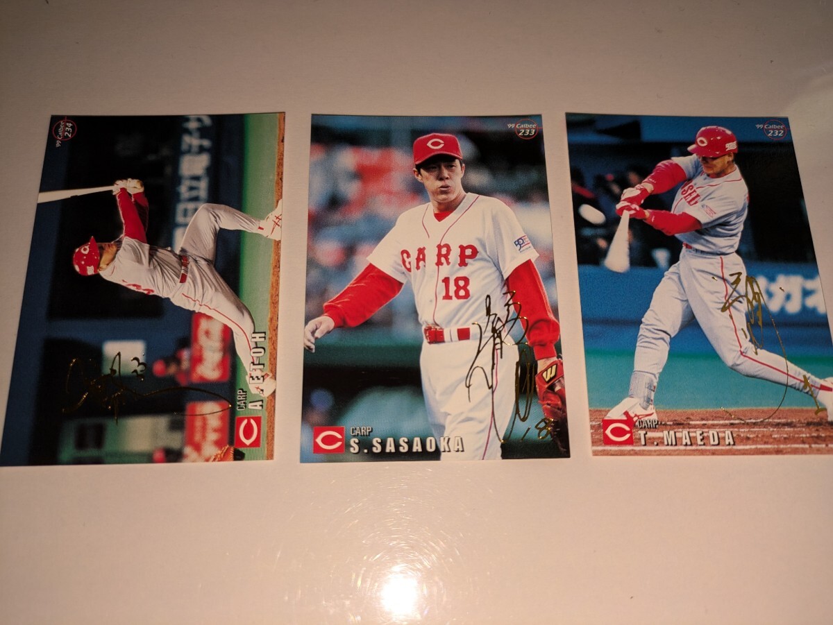 広島東洋カープ 99 カルビープロ野球チップス 4弾 金箔サインパラレル 3種3枚セット 前田智徳江藤智佐々岡真司