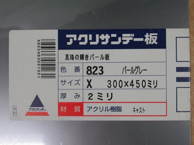 4枚まとめて アクリサンデー板 色番823 パールグレー 300×450mm 厚み2mm アクリル樹脂 キャスト 真珠の輝きパール板 アウトレット 未使用