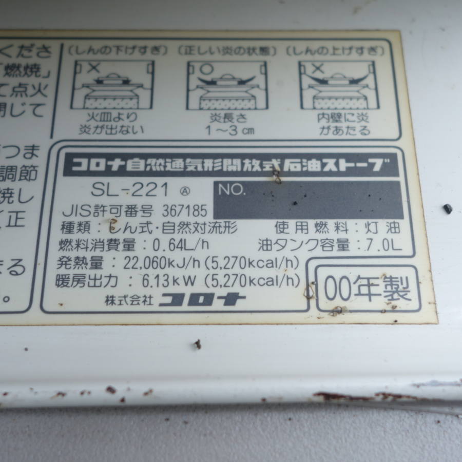 | 管理番号:1100000075991 メーカー:CORONA/コロナ 型番:SL-221 規格・仕様: 【仕様】 ・電源(V):単1形乾電池×2(別売) ・暖房出力(kW/h):6.59 ・タンク容量(L):7 ・本体寸法(mm):幅460×奥行460×高さ598 ・暖房目安コンクリート:23畳(38[[M2]]) ・暖房目安木造:17畳(28[[M2]]) ・燃料消費量(L/h):0.64 ・燃焼持続時間(h):10.9時間 詳細備考: 簡易清掃、動作確認済みです。 使用感があり、サビや落としきれない汚れ等ございます。 【特長】 ・遠赤外線の暖かさが360°広がります。 ・遠赤外線炎筒とホワイトフレームにより身体をしんから暖めます。 ・天板が熱くなります。 商品は写真に写っているもので全てです。(※背景などにある無関係の物は含まず) 他に付属品はありません。 ご質問はお気軽にどうぞ。分かる範囲でお答えします!! ※上記は型番などから調べたデータを抜粋したものです。 |