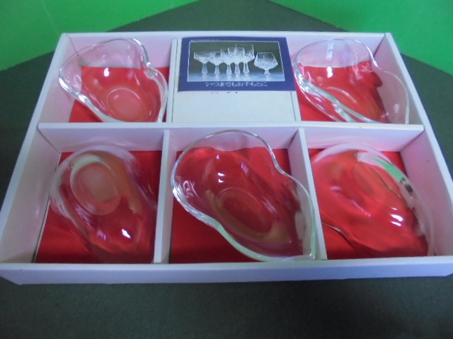 昭和レトロ 保谷クリスタル ひさご鉢五個揃えです。
