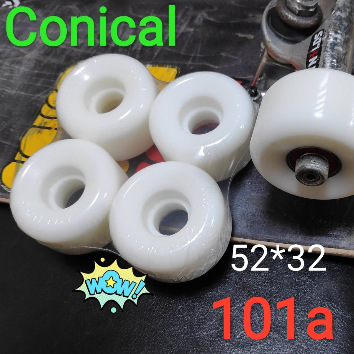 跳ね返りにくい硬さと面積が広く安定した乗り心地のコニカル シェイプ。 カチカチ固めの スケートウィールです!接地面が広いのでドライブやスライドが入れやすい!ストリートスケート、フラット、パークでよく使わらているウィールです!