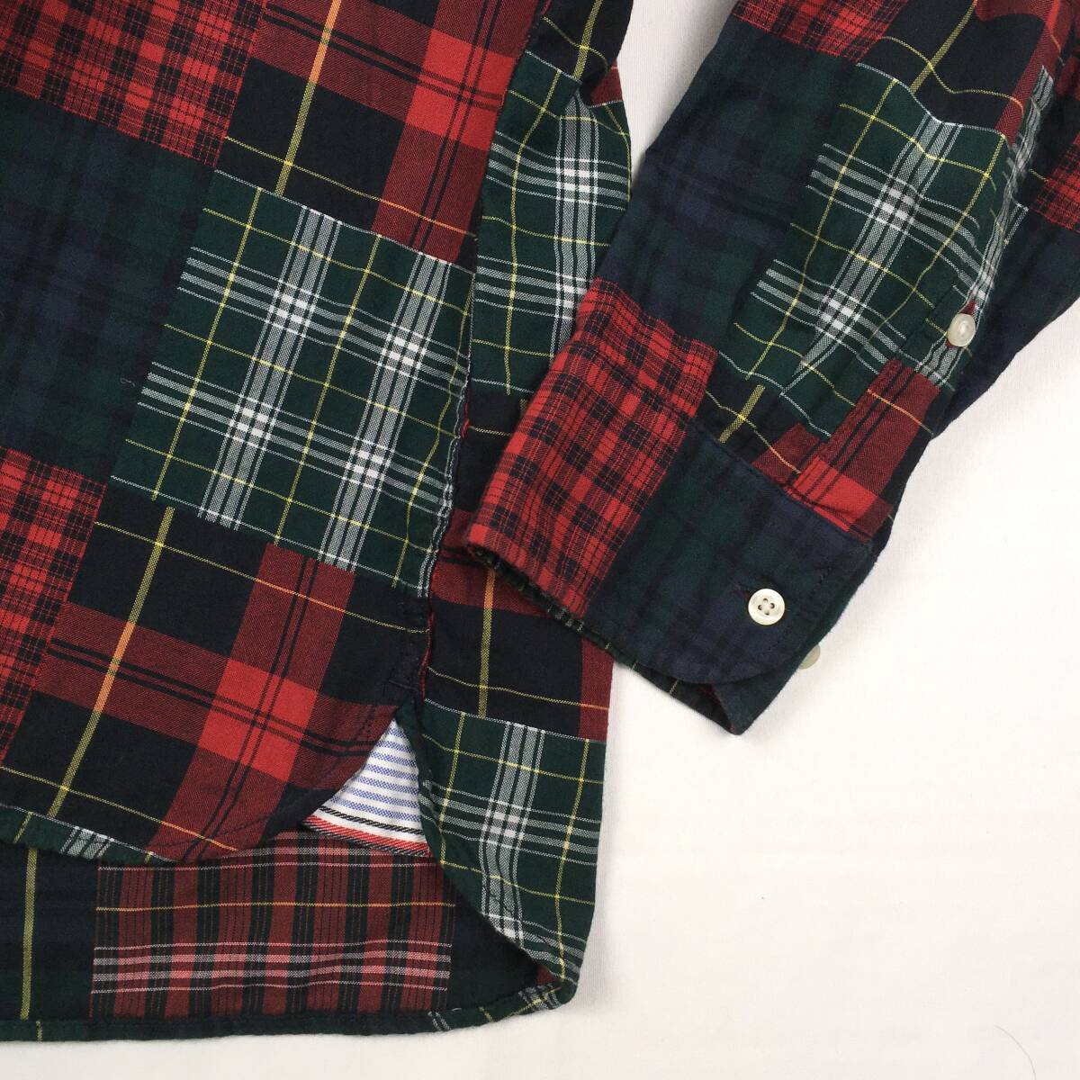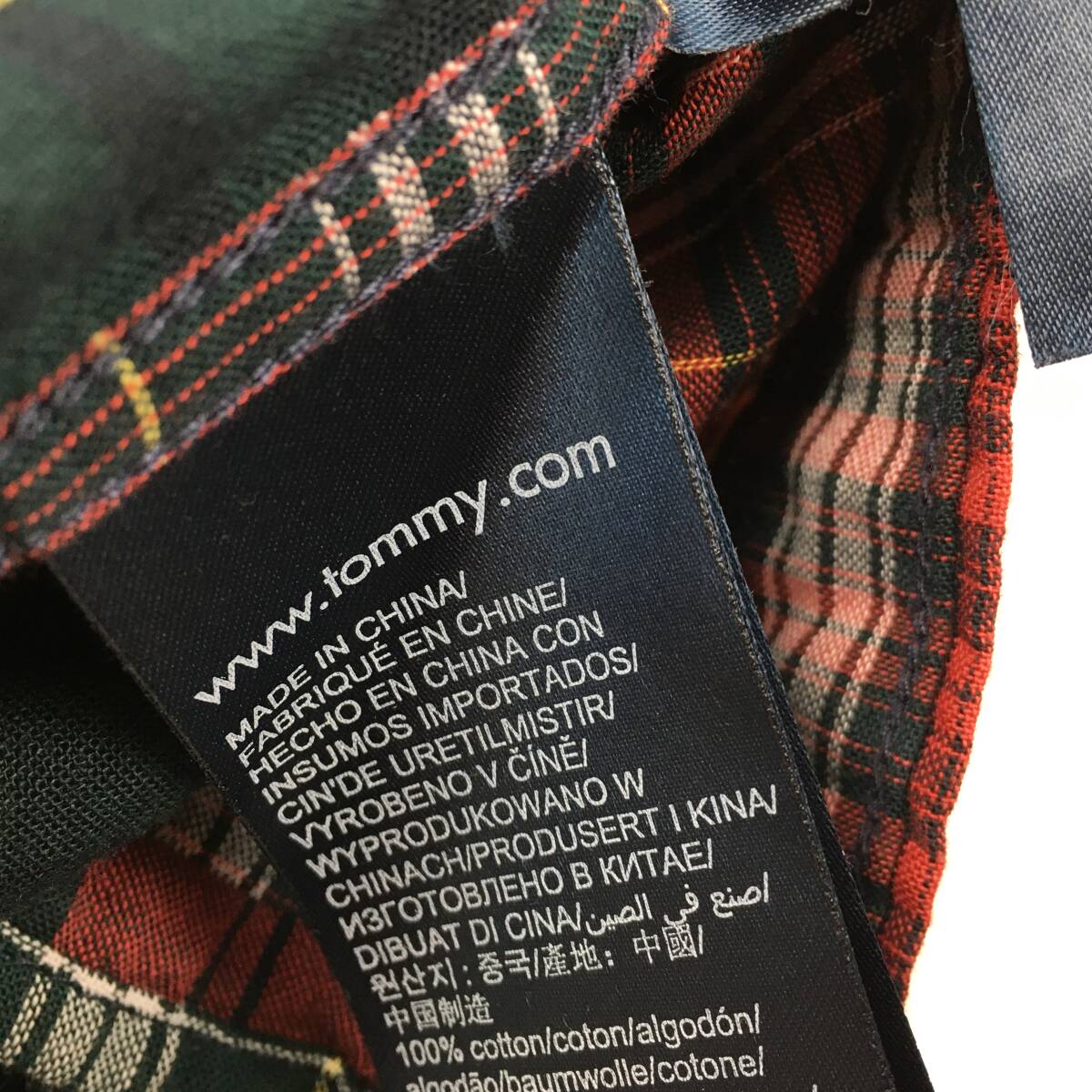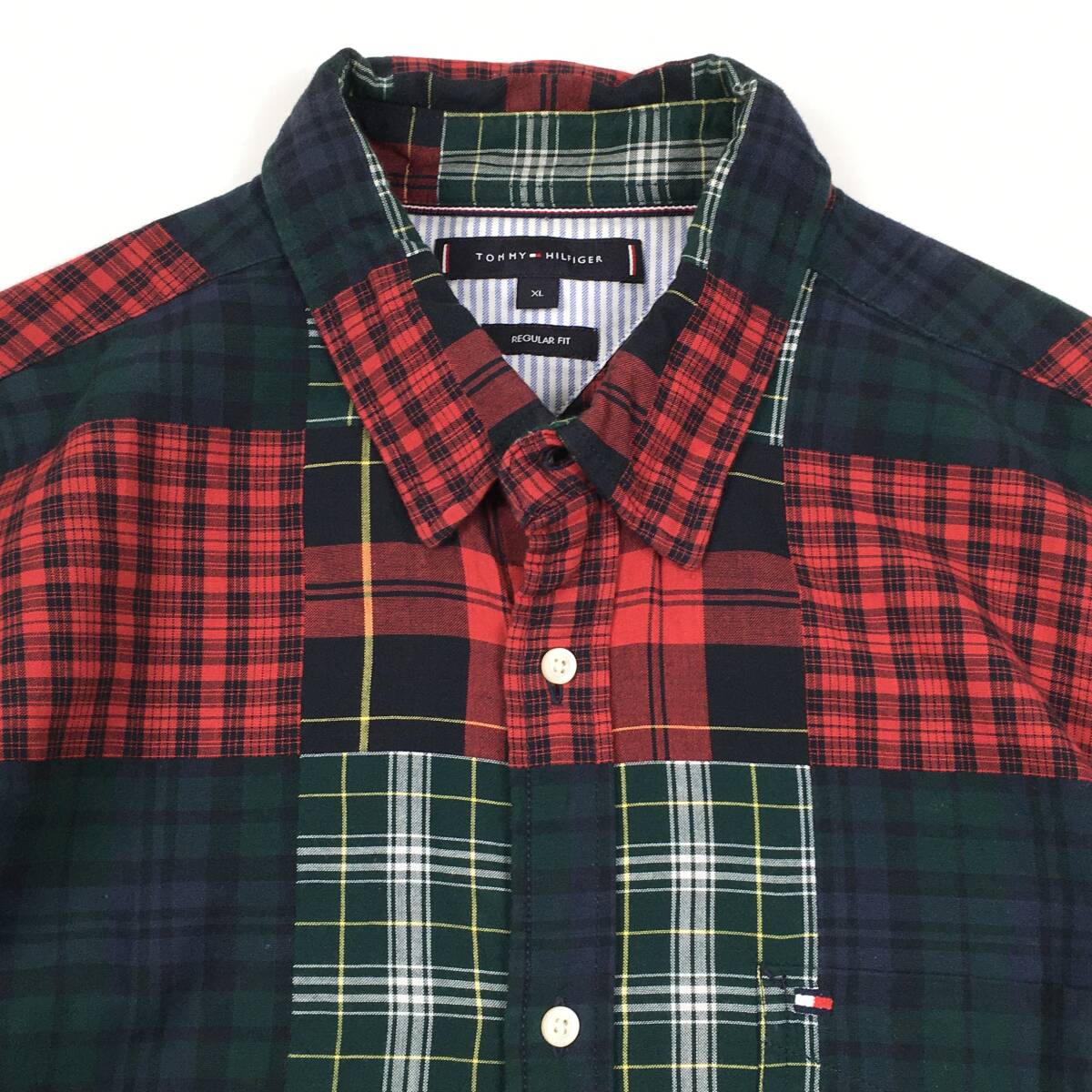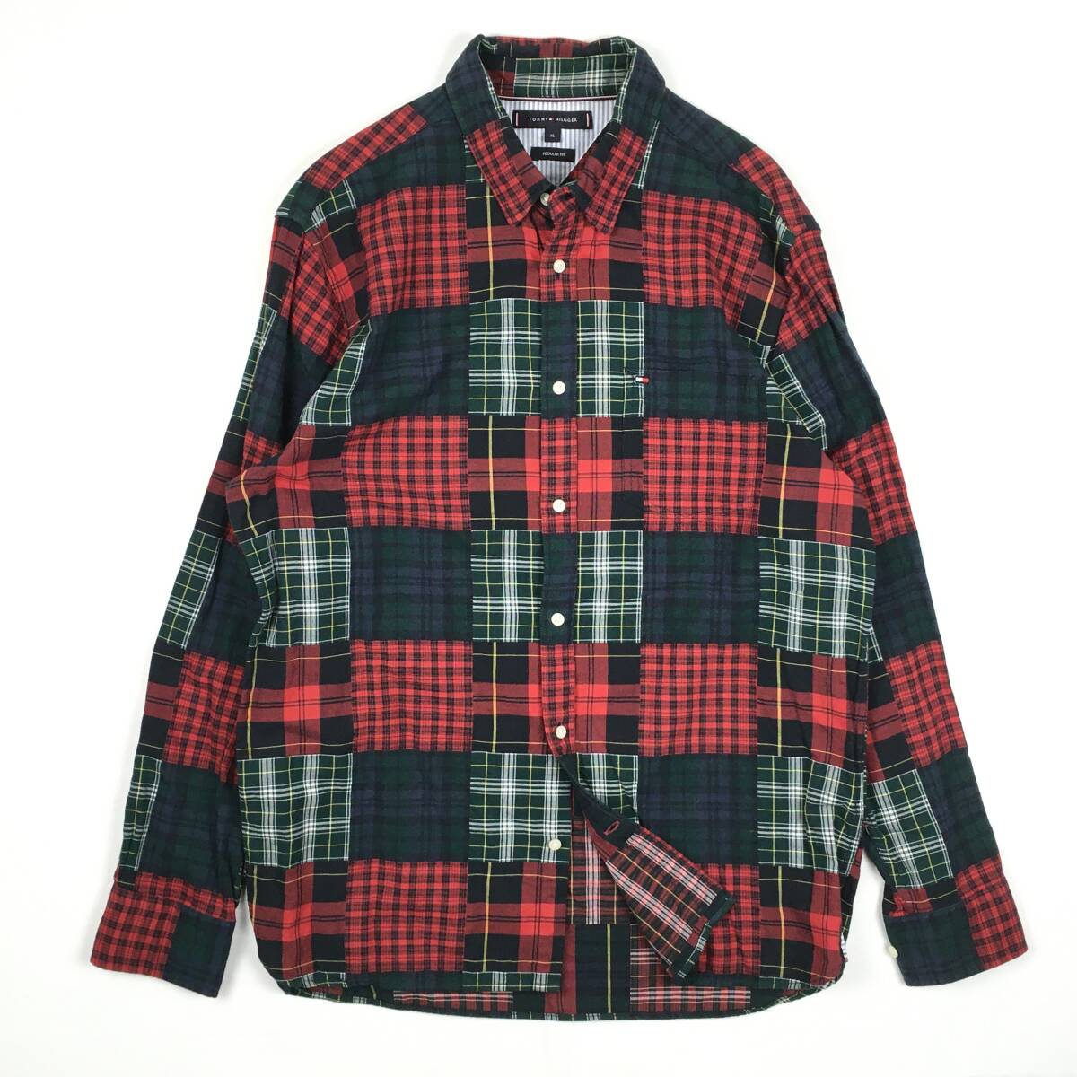 美品【TOMMY HILFIGERトミーヒルフィガー】ダブルガーゼ/クレイジーパターン 長袖シャツ XL チェック 切り替え メンズ