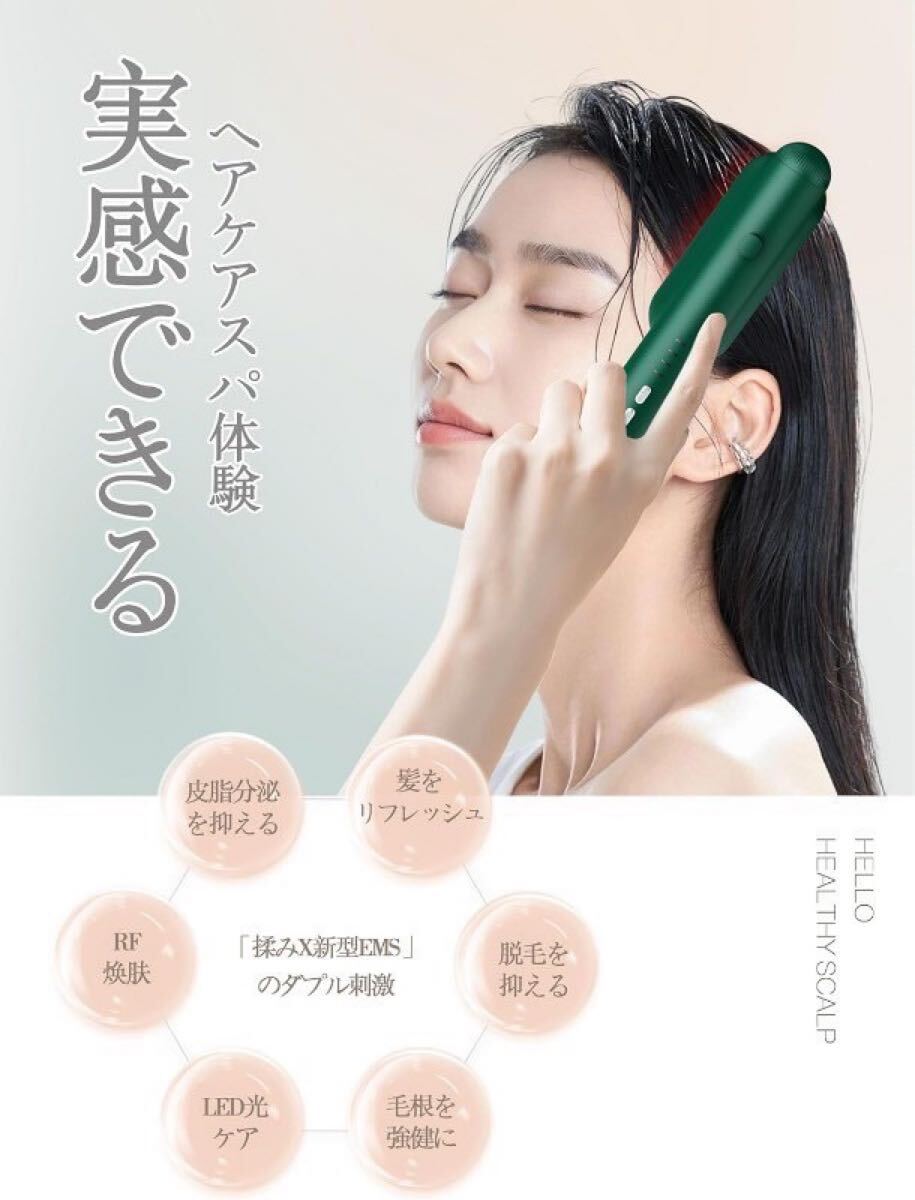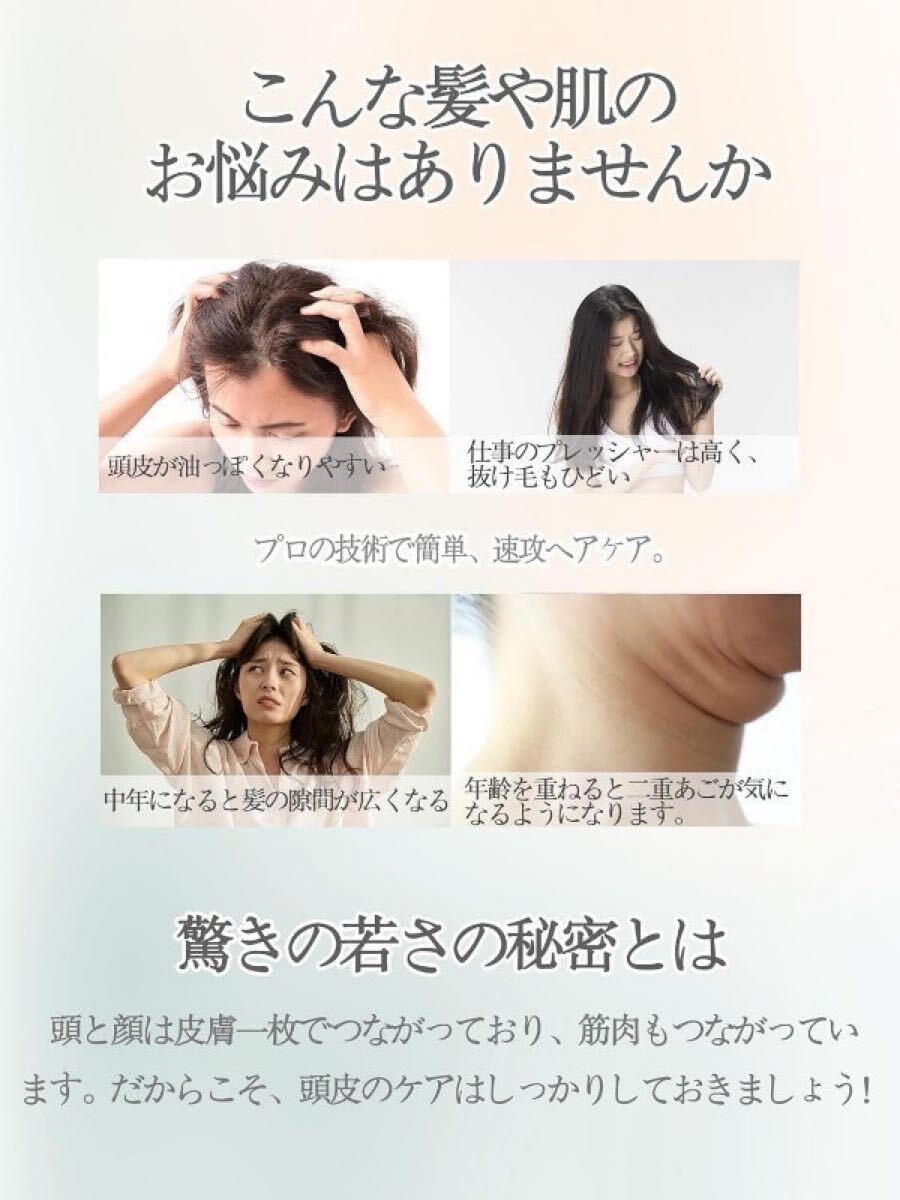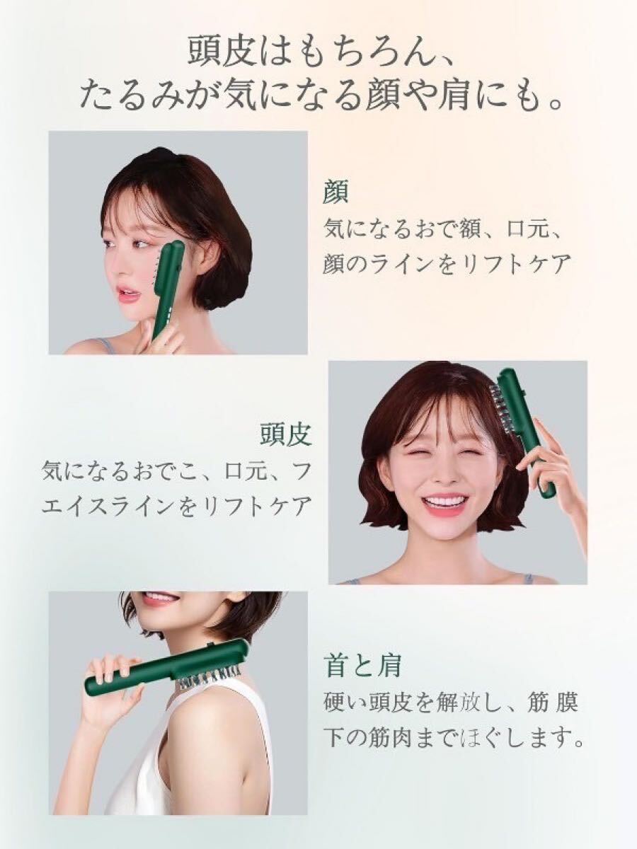 RF(ラジオ波)、EMS(マイクロカレント)、EP(エレクトロポレーション)、LED光エステを備えた多機能EMSブラシで、頭皮だけでなく顔や首のリフトアップにも使えます。肩や体のマッサージもできます。 男女問わず、たった10分で自宅でサロン級の体験ができるので、今すぐ行動しましょう!