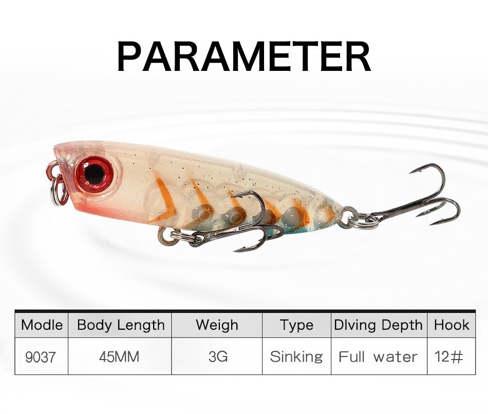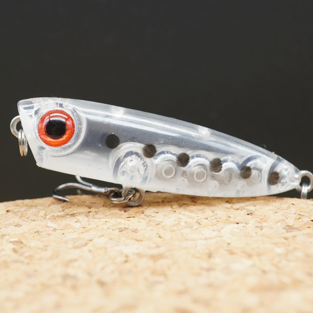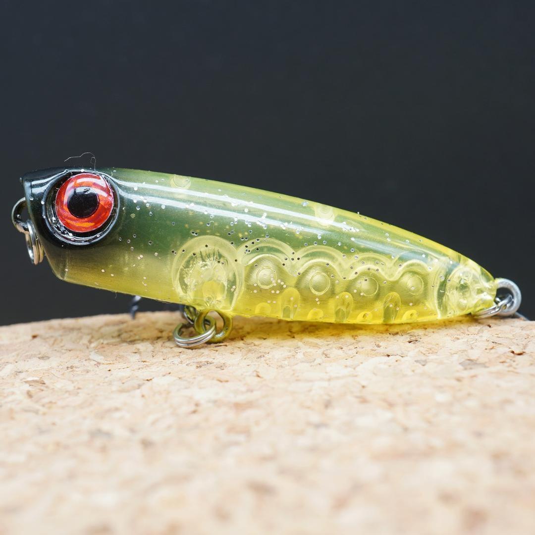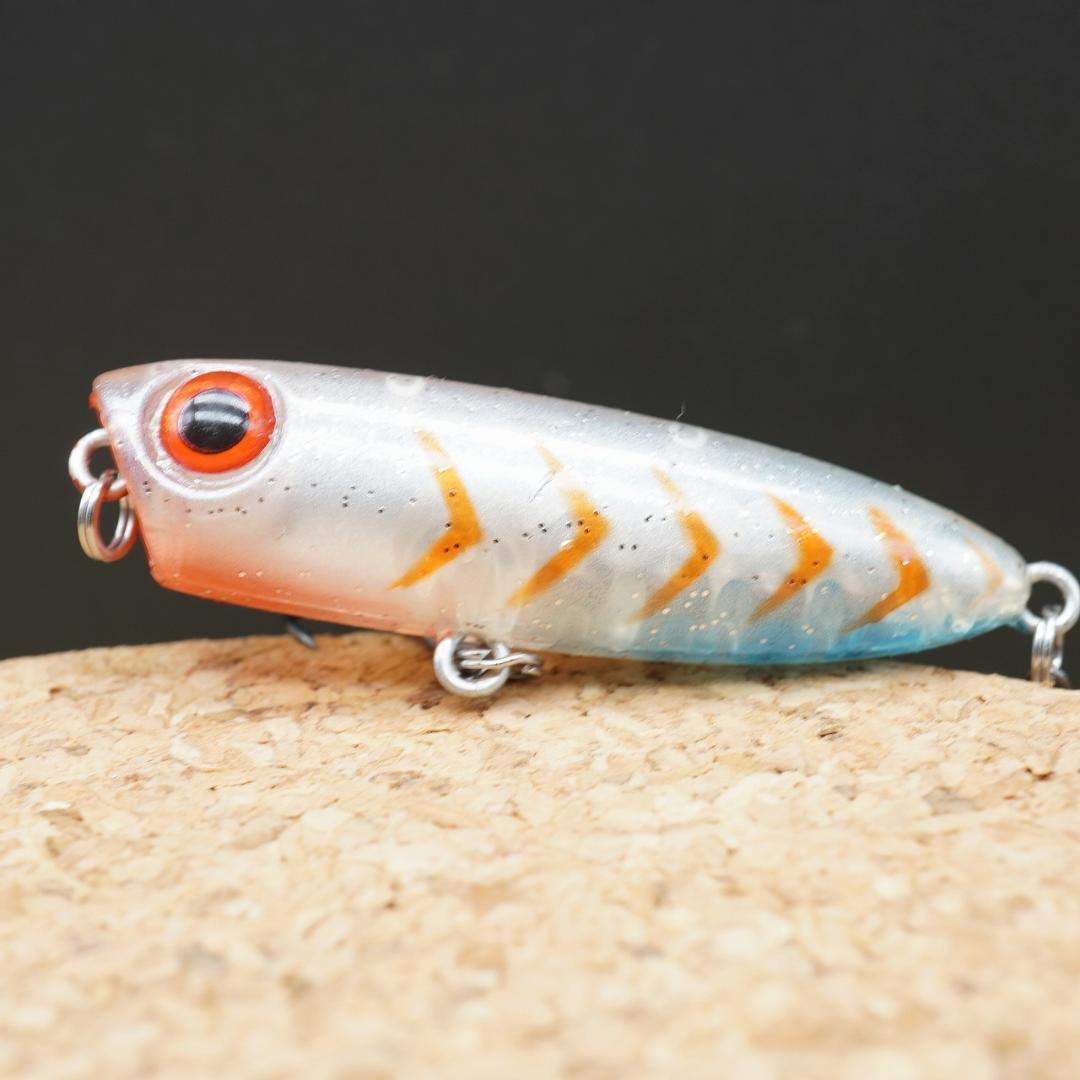 表層によく反応するターゲットを夢中にするこのペンシルポッパーは、ライズしている状態はもちろん、