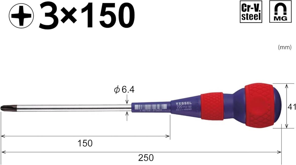 ベッセル(VESSEL) ボールグリップドライバー +3×150 220