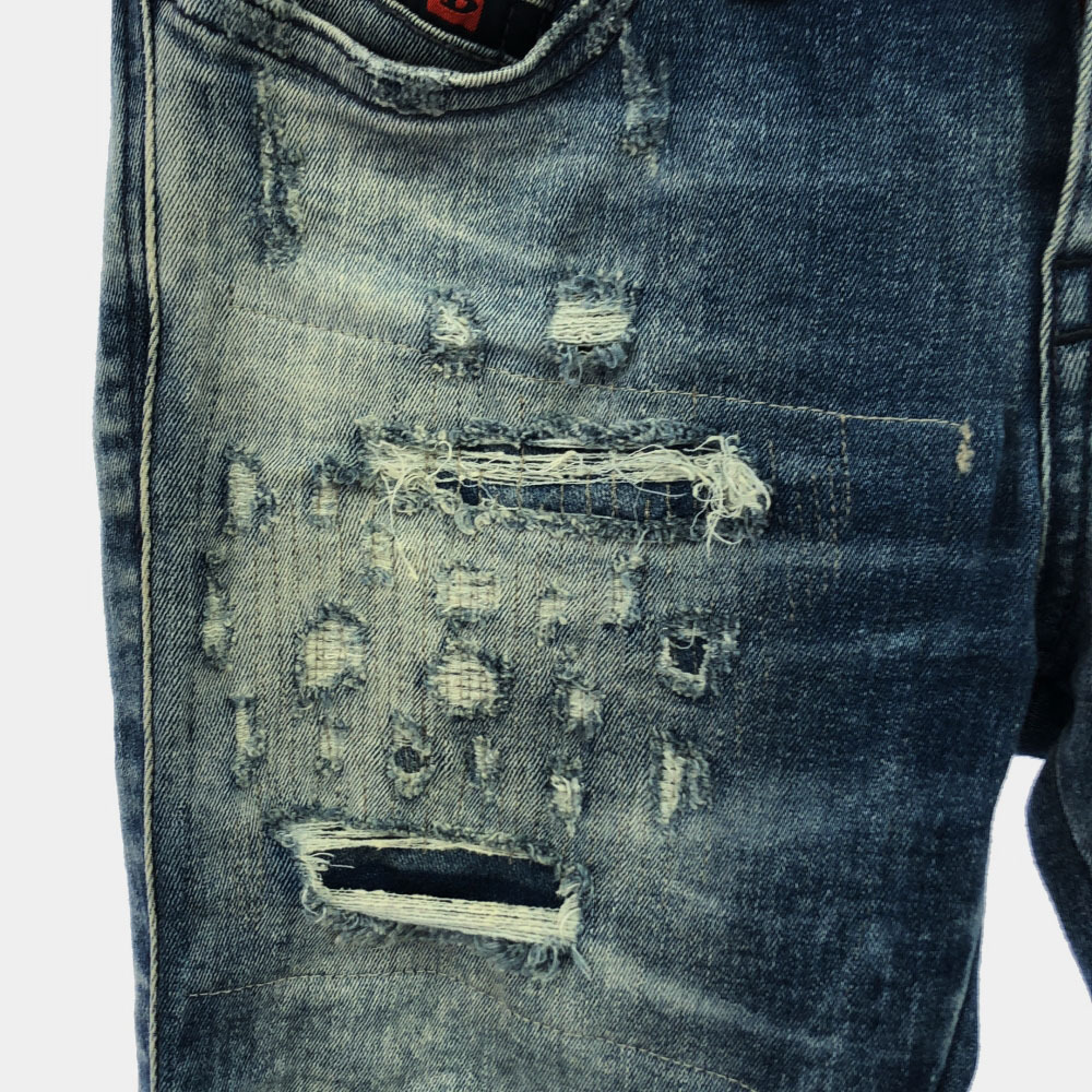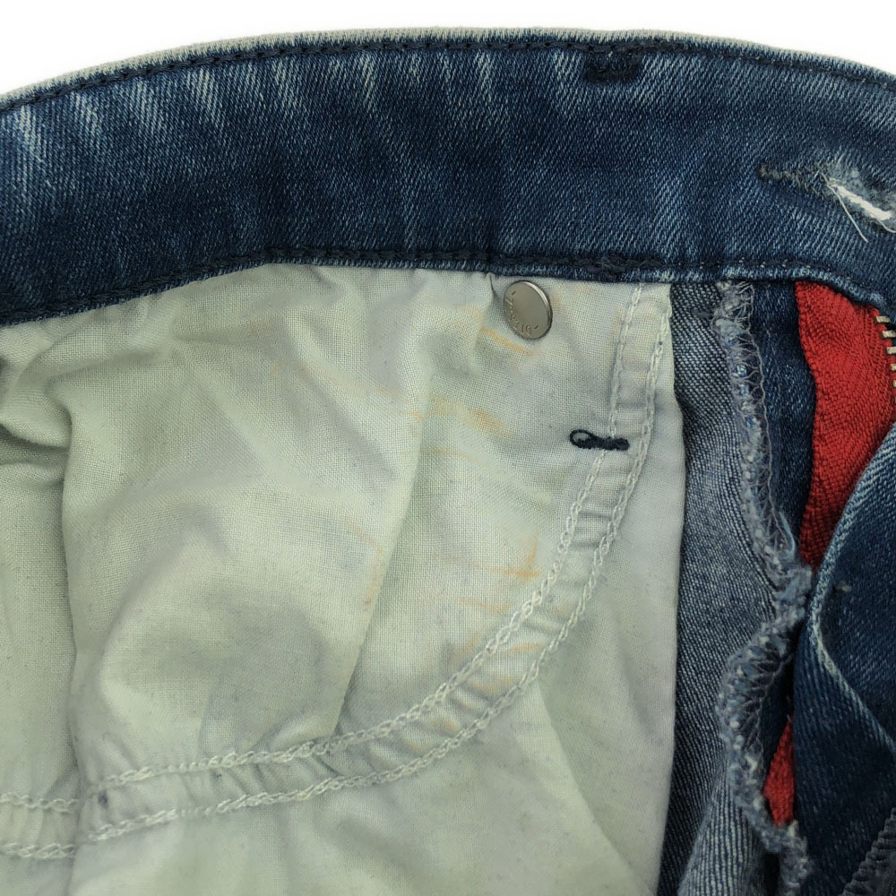 | 詳細 | デニム特有のスレ・アタリがございます。前身頃と内側のポケットと股部分に若干の汚れがあります。ジーンズならではエイジングとしてご理解いただき、ご購入をお願い致します。 |