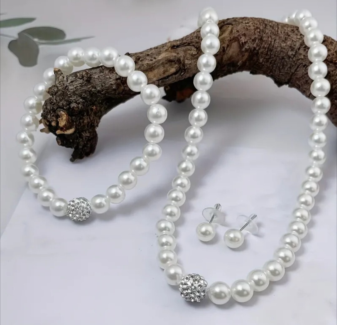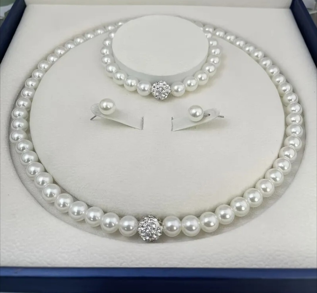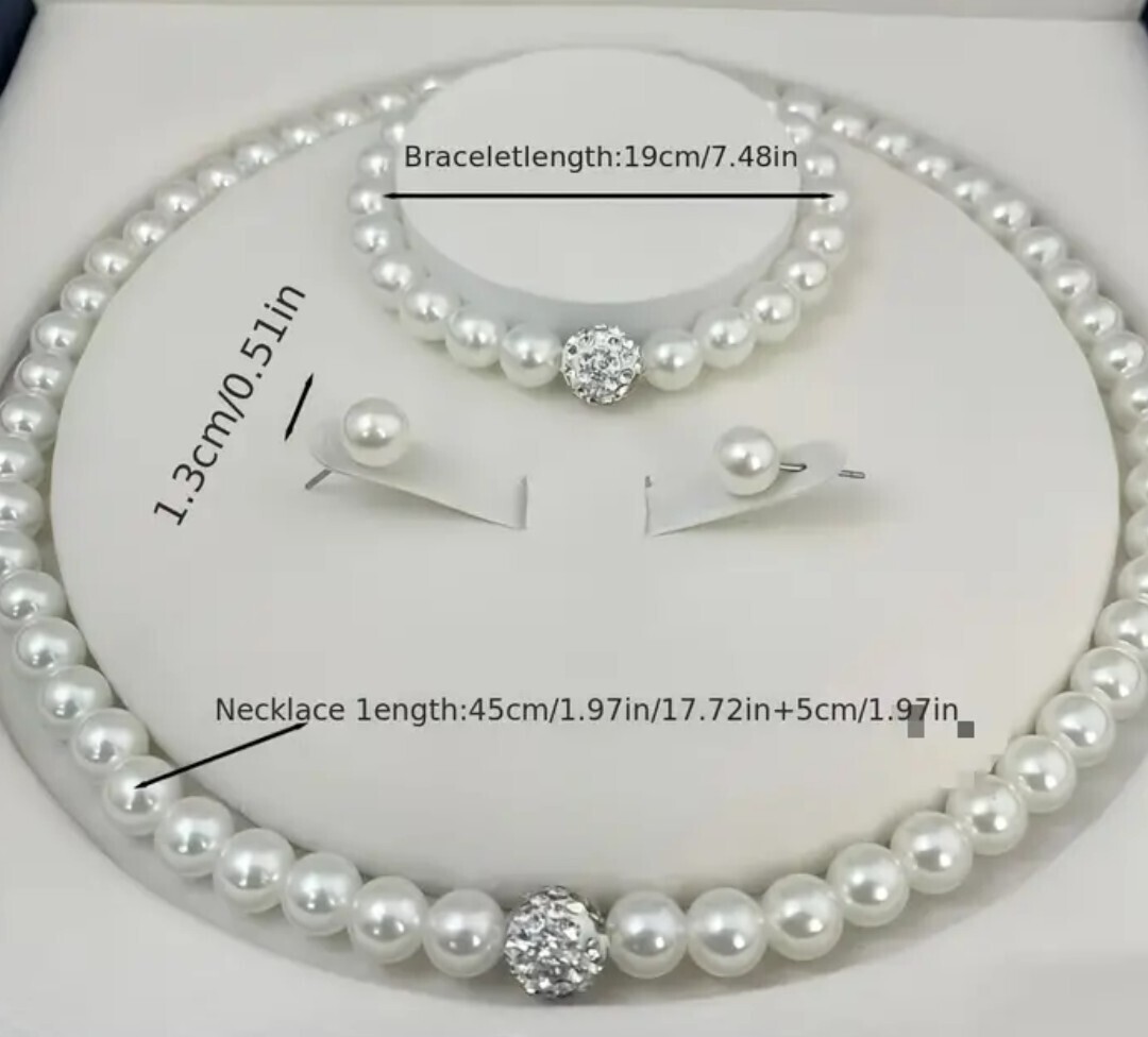 ヨーロッパとアメリカのクロスボーダー模造パールネックレス、ブレスレット、ピアスの3点セットです。