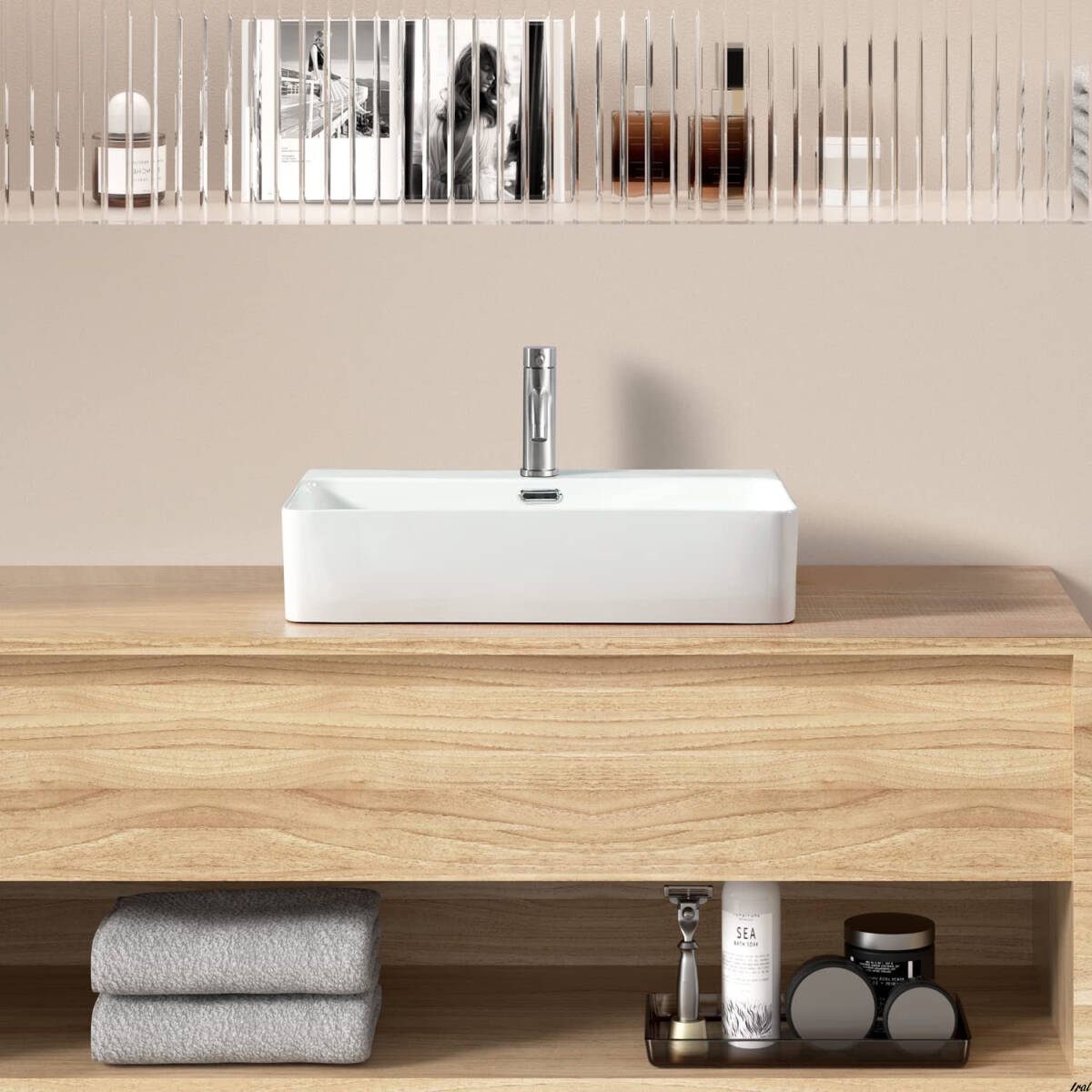 陶器のもつ落ち着いた質感と、シンプルな長方形で室内のどんなデザインにも合わせやすく、個性豊かな洗面空間を作り上げられます。