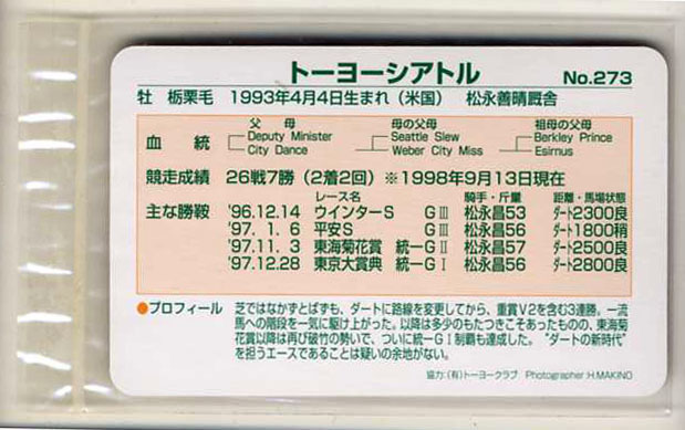 | ★まねき馬カード SP 273番 トーヨーシアトル スペシャルカード 未開封 写真 画像 競馬カード 即決 | |
