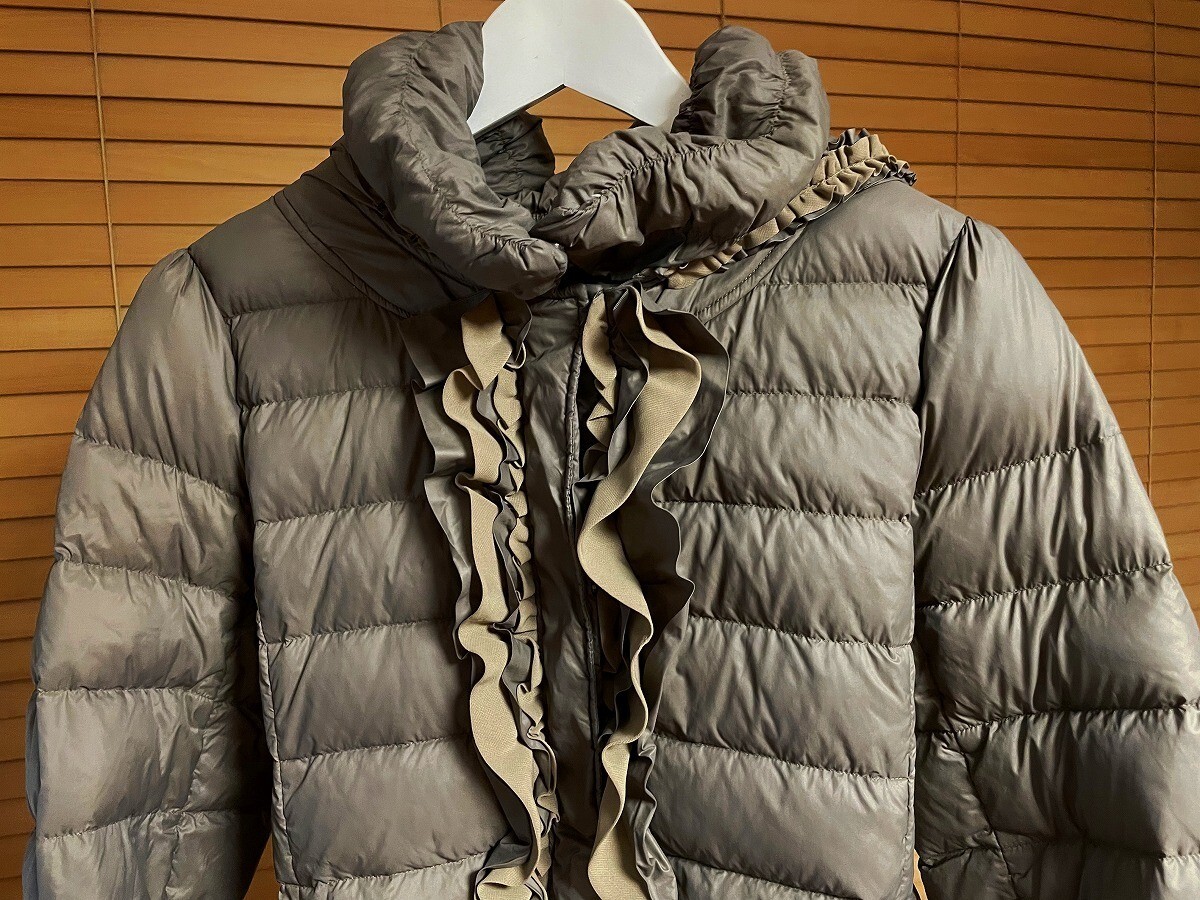 【激安1点のみ 国内正規品】&LOVE アンドラブ magami satomi フード付き フリル ダウンコート M カーキがかったブラウン系 USED