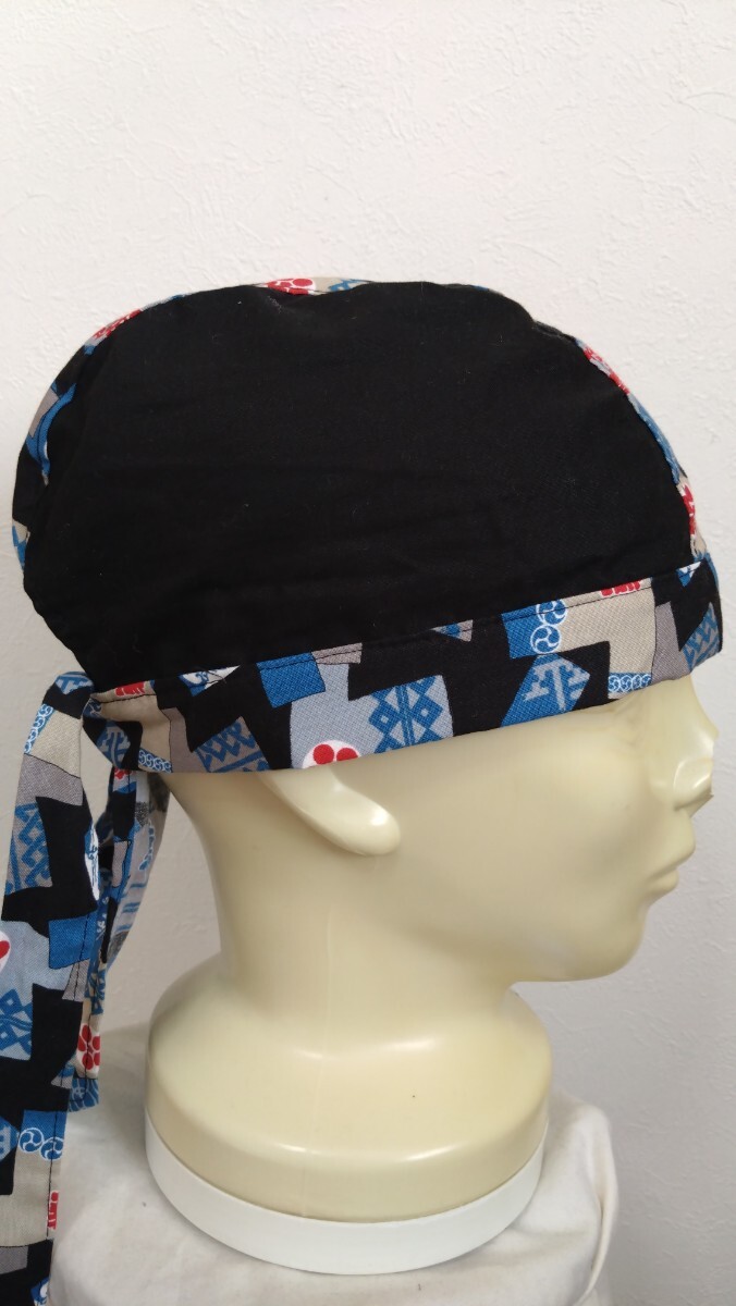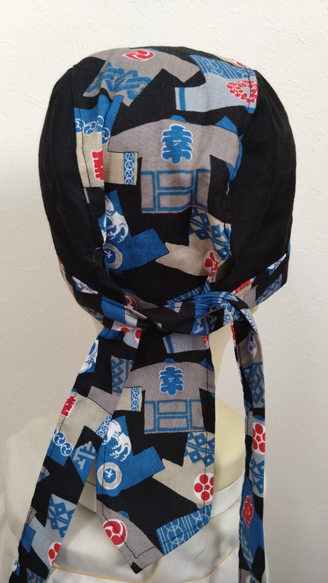 ★バンダナキャップ★ハンドメイド 和柄 祭り×無地 はっぴ 法被 黒