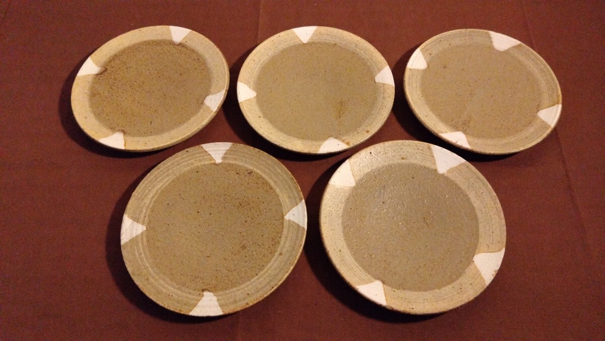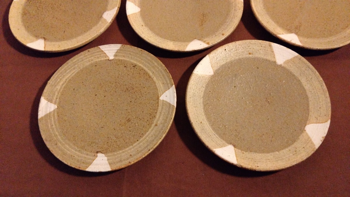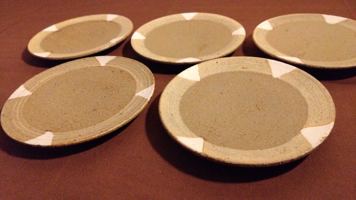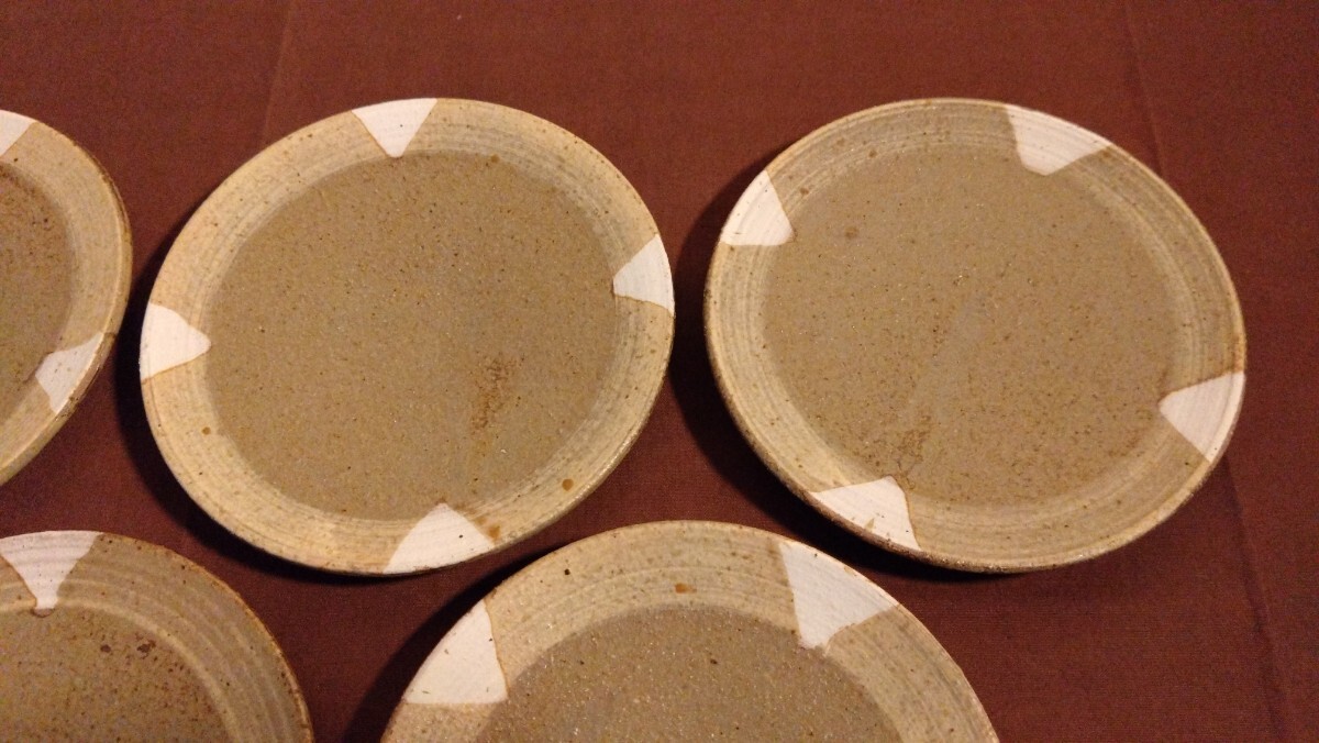 越前焼 古越前 豆皿 三角紋 ドット模様 菓子皿 5客になります。大変古いものですので写真をご確認の上是非ご活用ください。