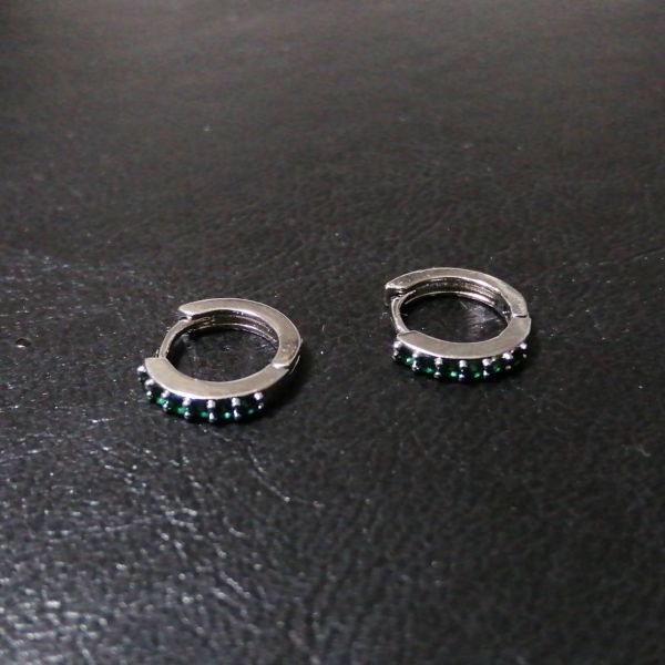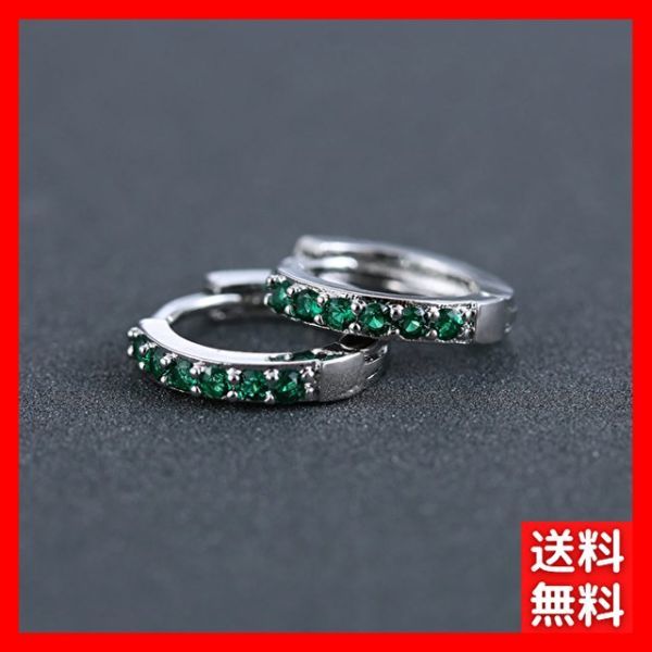 ピアス S925針 シルバー シンプル リング フープ 緑 グリーン cz レディース 韓国 キュービックジルコニア ラインストーン #C1636-5