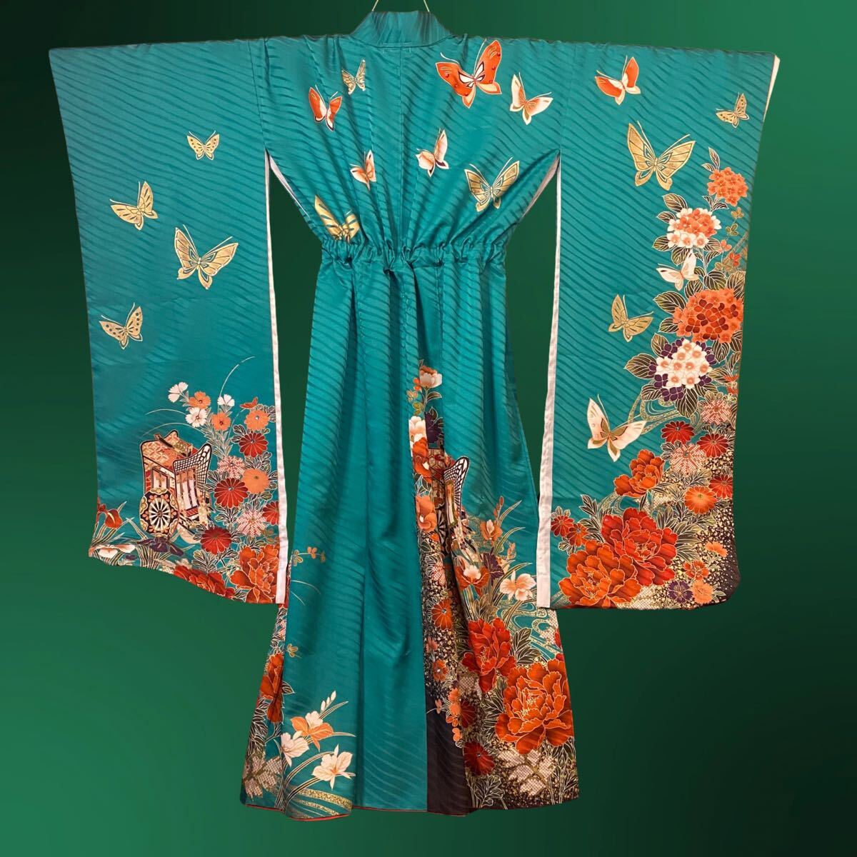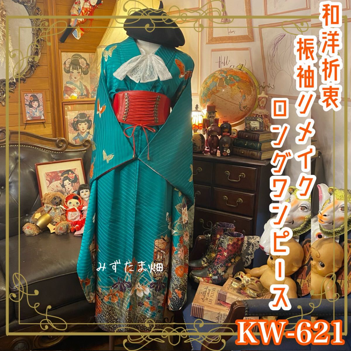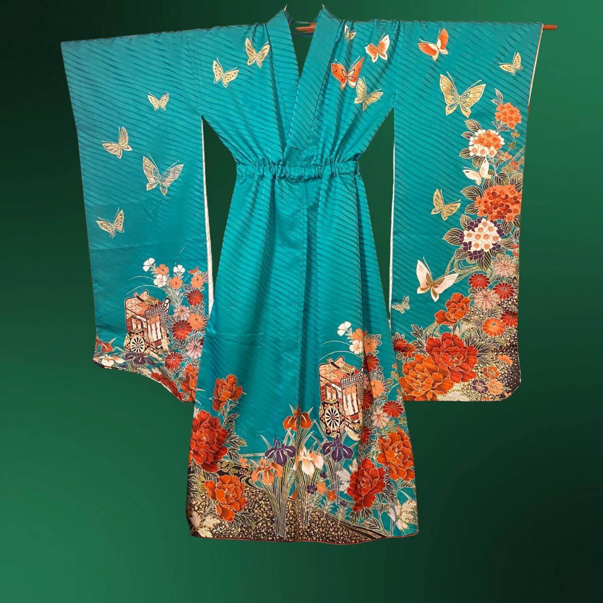 【KW-621|華やかに蝶が舞う特別な振袖リメイクワンピース 和洋折衷の美が光るプレミアム着物】