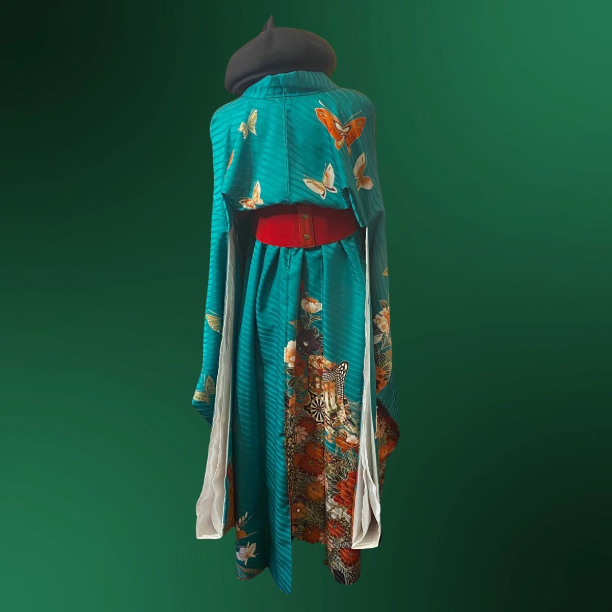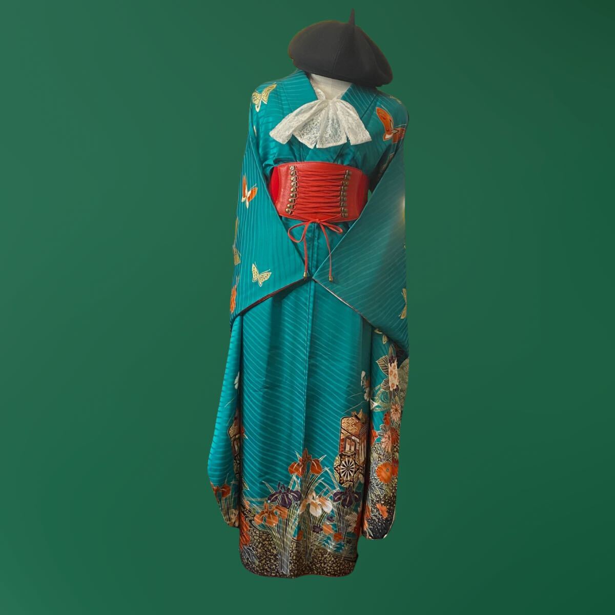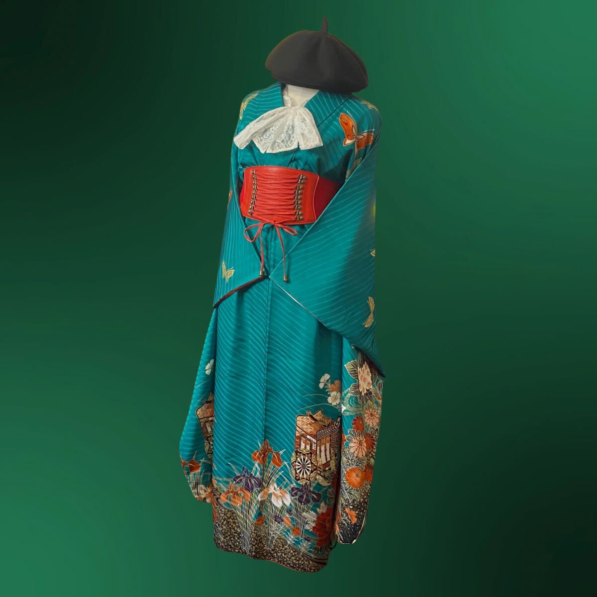 【KW-621|華やかに蝶が舞う特別な振袖リメイクワンピース 和洋折衷の美が光るプレミアム着物】