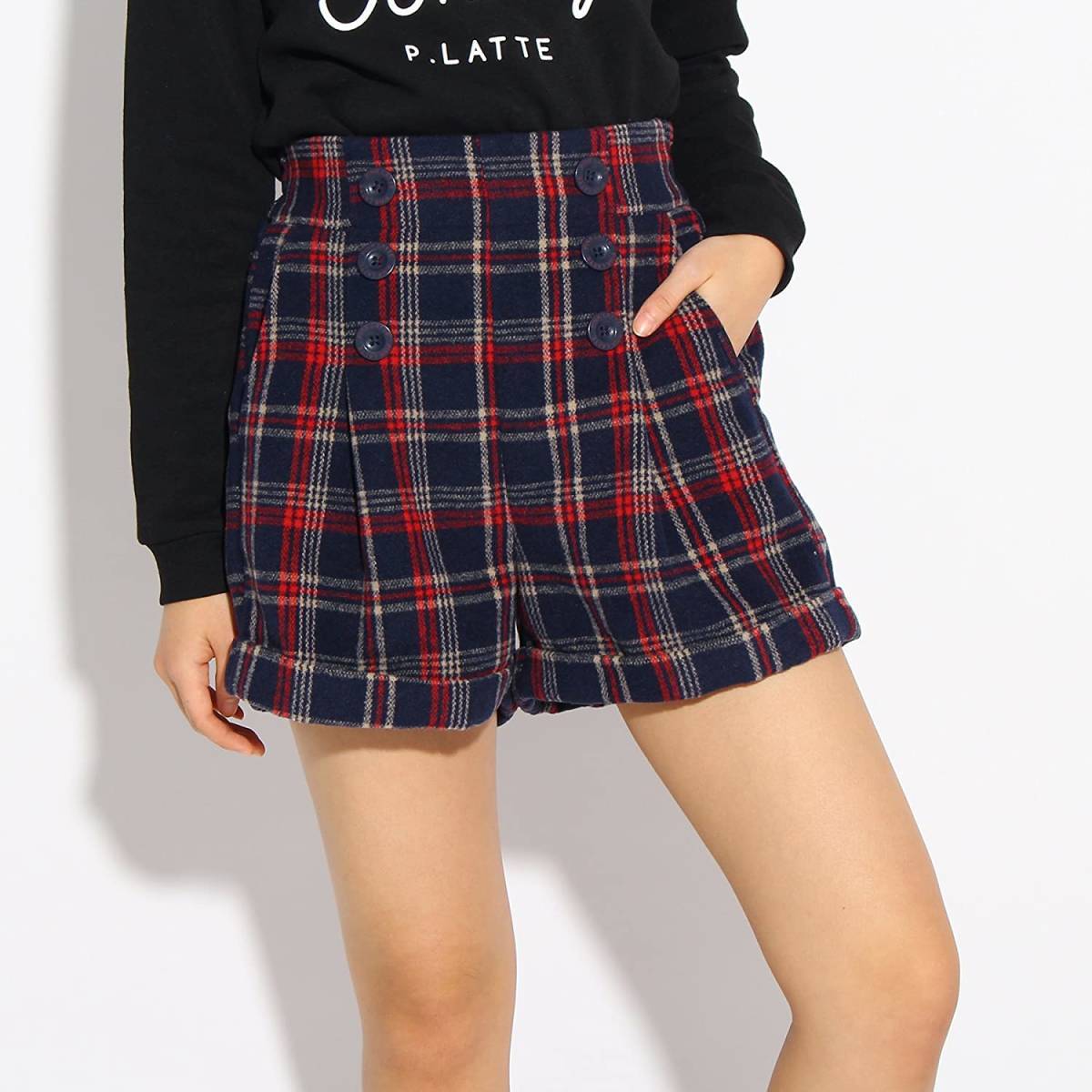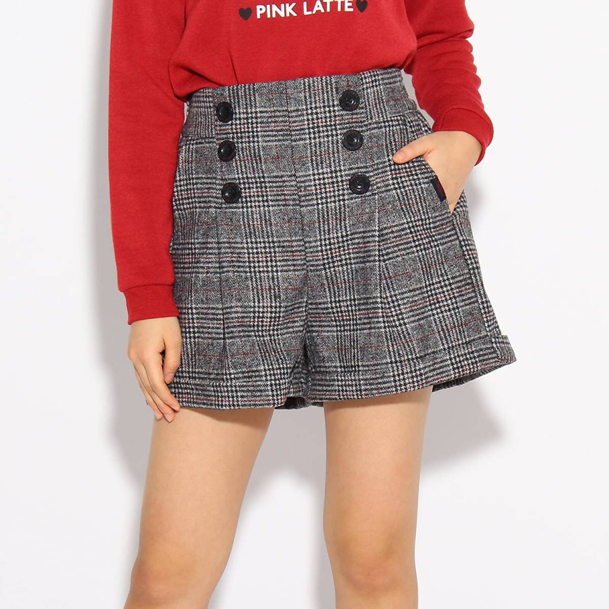 新品 PINK-latte マリンテイストウエストボタンショーパン ネイビーチェック 14(XXS140cm) 定価3630円