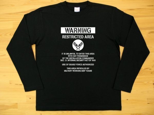 RESTRICTED AREA 黒 5.6oz 長袖Tシャツ 白 S ミリタリー U.S. AIR FORCE ステンシル