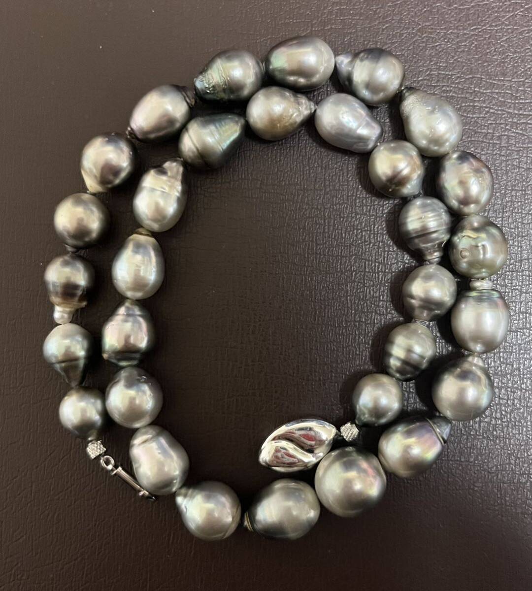 希少!タヒチ黒蝶真珠 バロックパール ロングネックレス