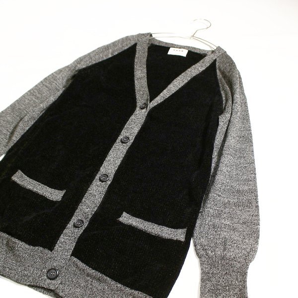 モールヤーンに似た素材と一般的なニットの切り替えワンピースです。