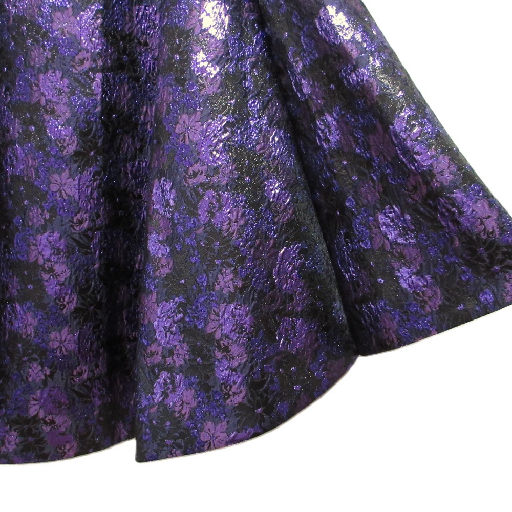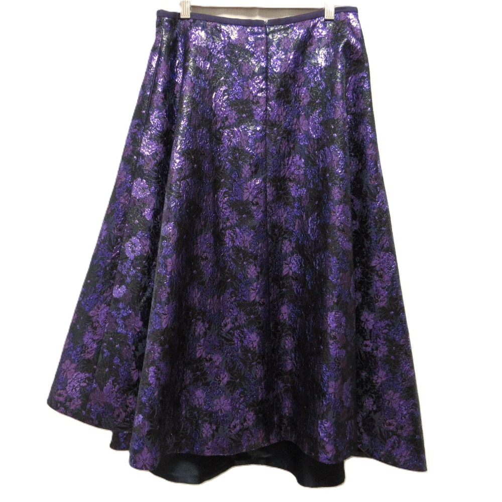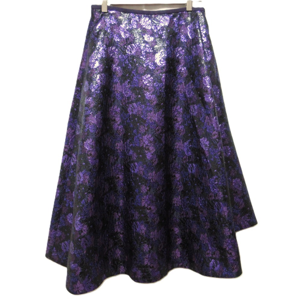 商品名:美品 Drawer ドゥロワー ラメ糸 ミモレ丈 アシンメトリー パープルフラワージャカードスカート 6524-299-1370 38 パープル