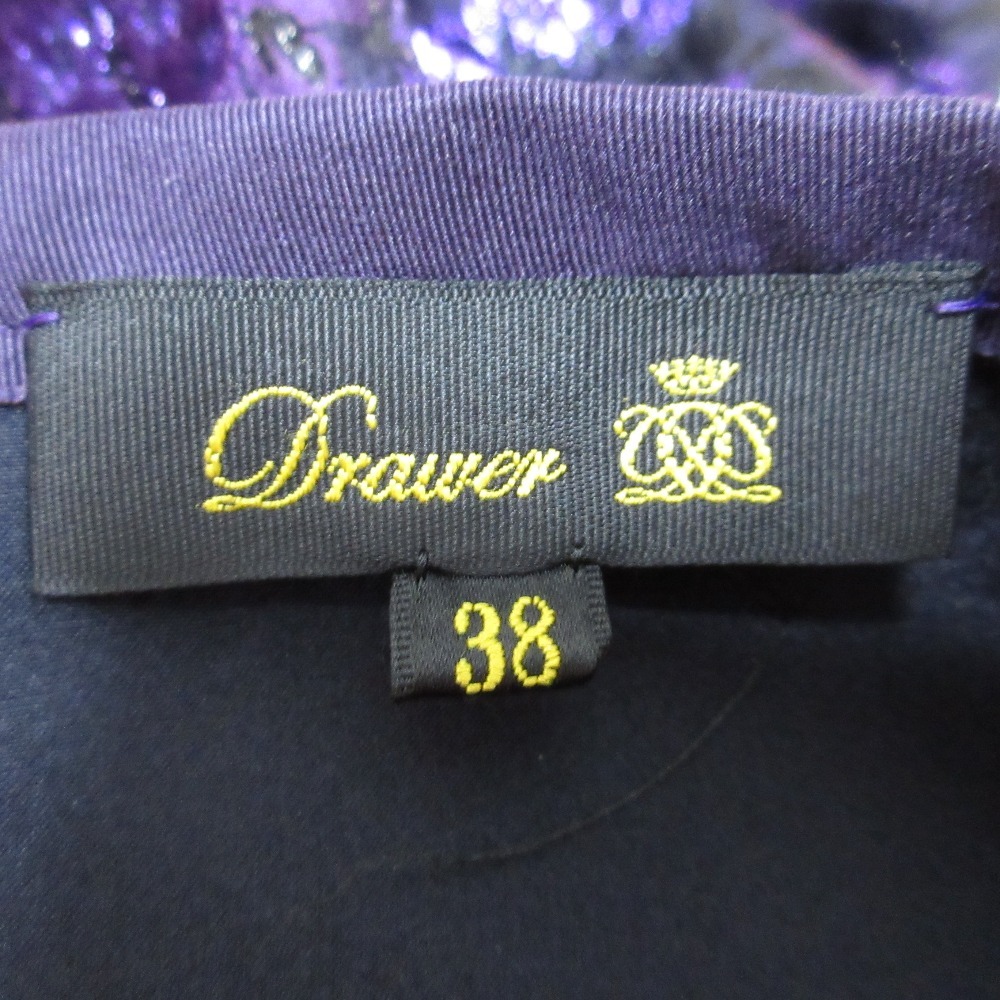 美品 Drawer ドゥロワー ラメ糸 ミモレ丈 アシンメトリー パープルフラワージャカードスカート 6524-299-1370 38 パープル