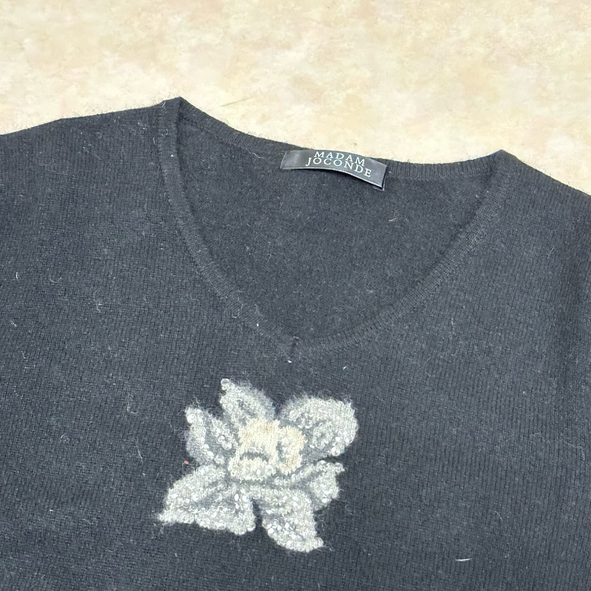 | マダム・ジョコンダ MADAM JOCONDE ニット セーター 長袖 丸首 サイズ(160-84-92) カシミア ブラック 花柄 ラピーヌ 中古良品 | |