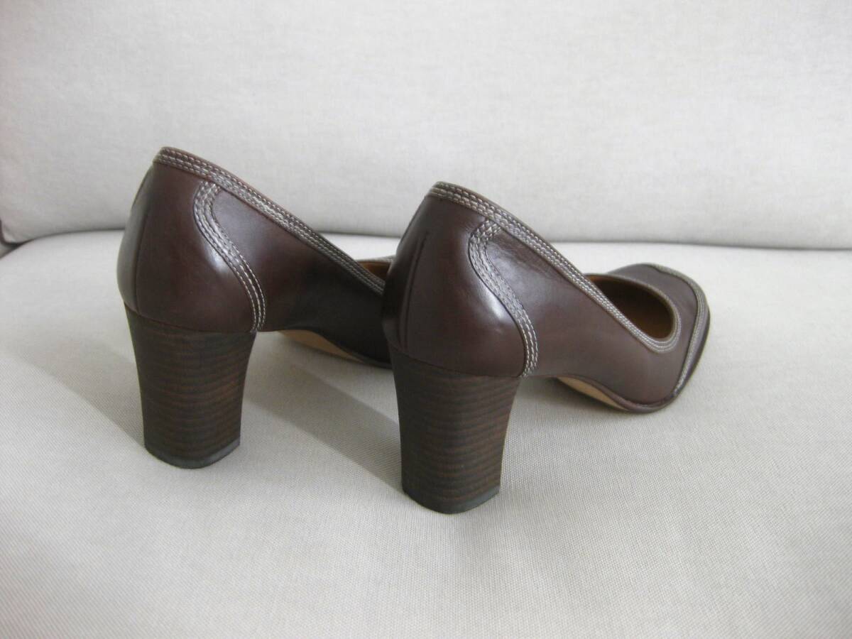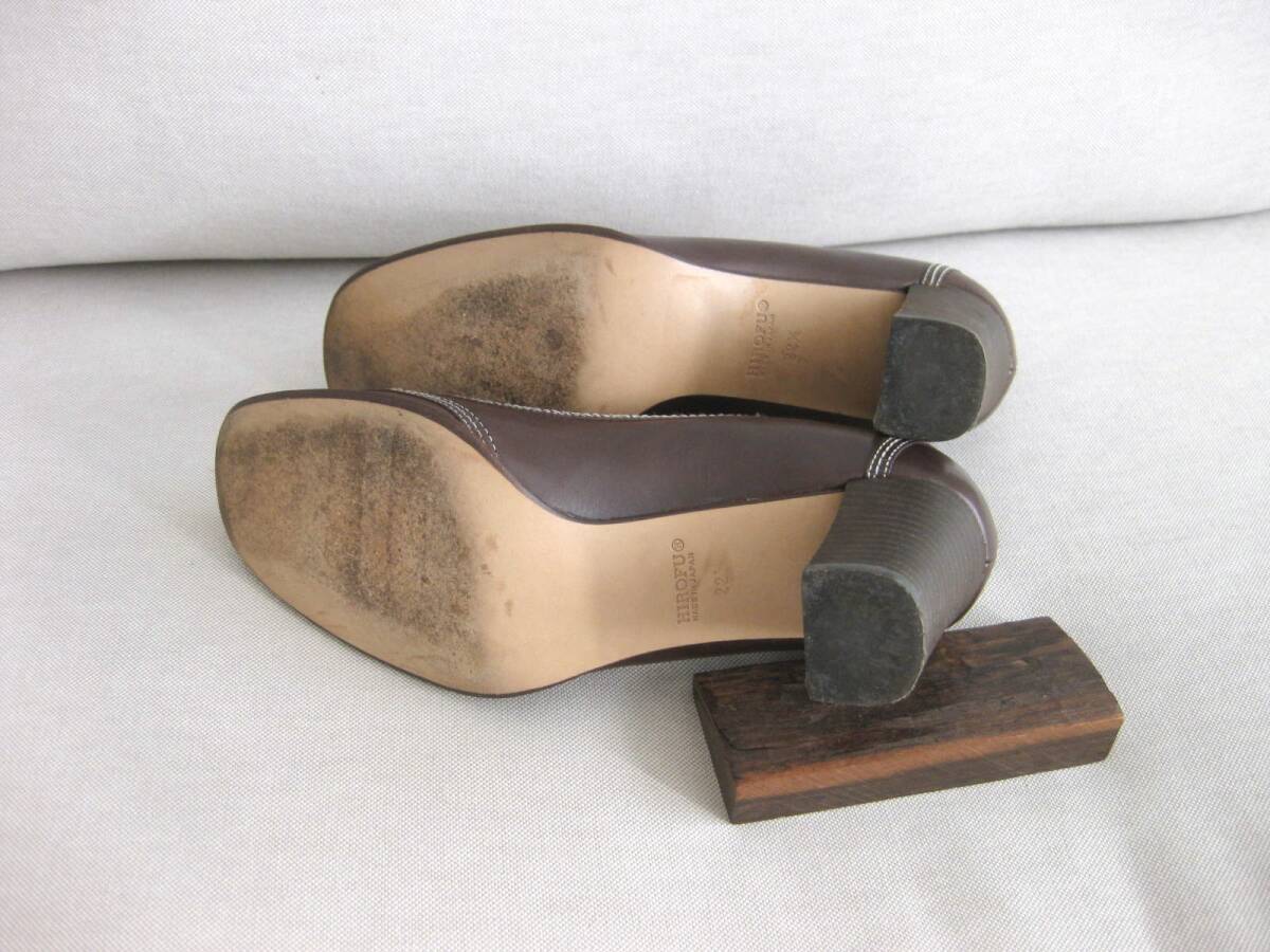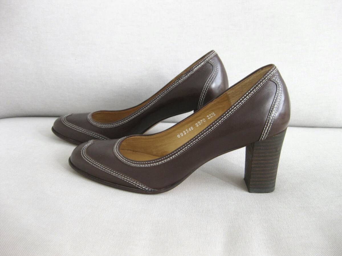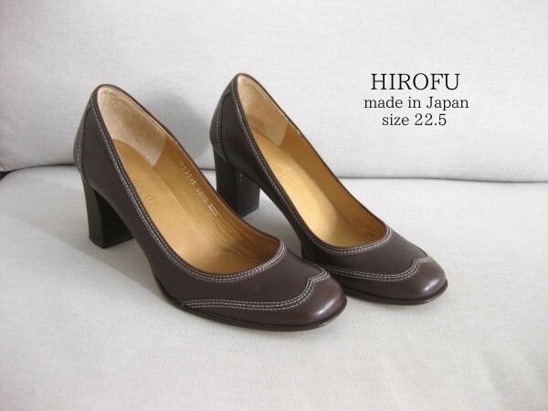 送料込☆HIROFUヒロフ☆ヒールパンプス☆レザー☆22.5cm☆D.BROWN☆太ヒール☆レザーパンプス