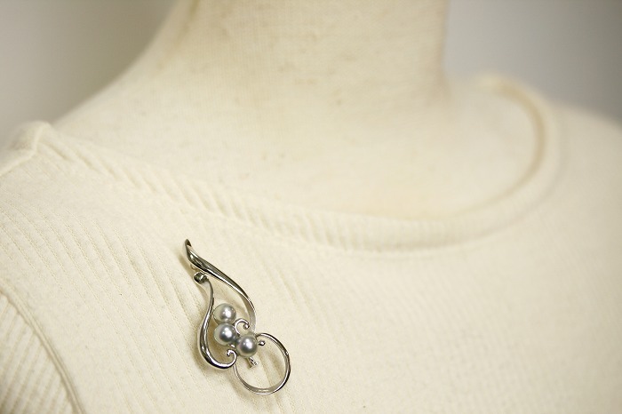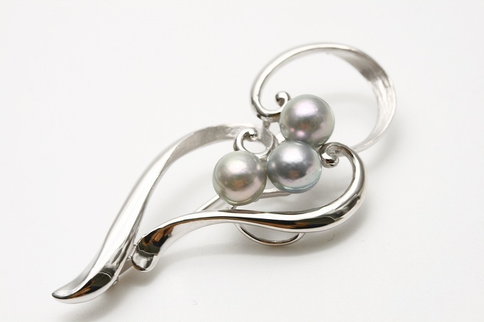 アコヤ真珠ナチュラルパールブローチです。 ナチュラルパールとは調色,染色加工などが一切施されていない真珠で 限りなく生まれたままの姿を表現した真珠です。 綺麗に生まれてくる珠が少なく 業者間でも通常のパールに比べて高値で取引されております。 調色された真珠では表現できない水でコーティングされた様な 透明感のある色艶,美しい光沢が魅力的です。 今回清涼感溢れる輝きが美しいナチュラルグレー系の珠をお選びいたしました。 ぜひこの機会に天然の輝きを見にまとって下さい。 | |