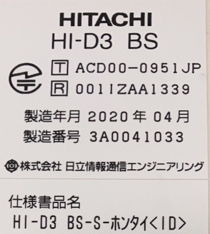 日立 HITACHI  【HI-D3 BS-S-ホンタイ(ID) 】 メイン接続装置  2020年製