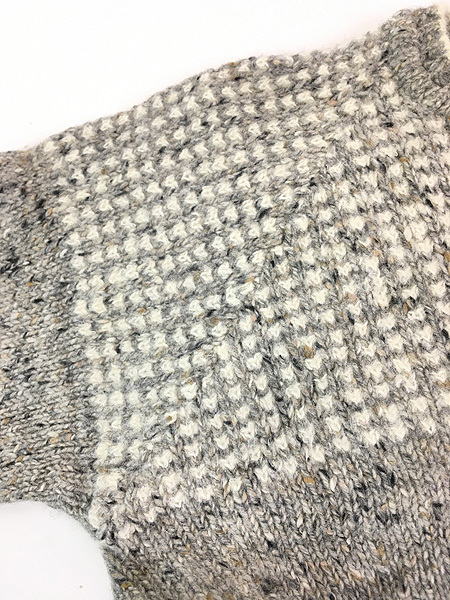 珍しい首回りのみポップコーン編みのディテール。