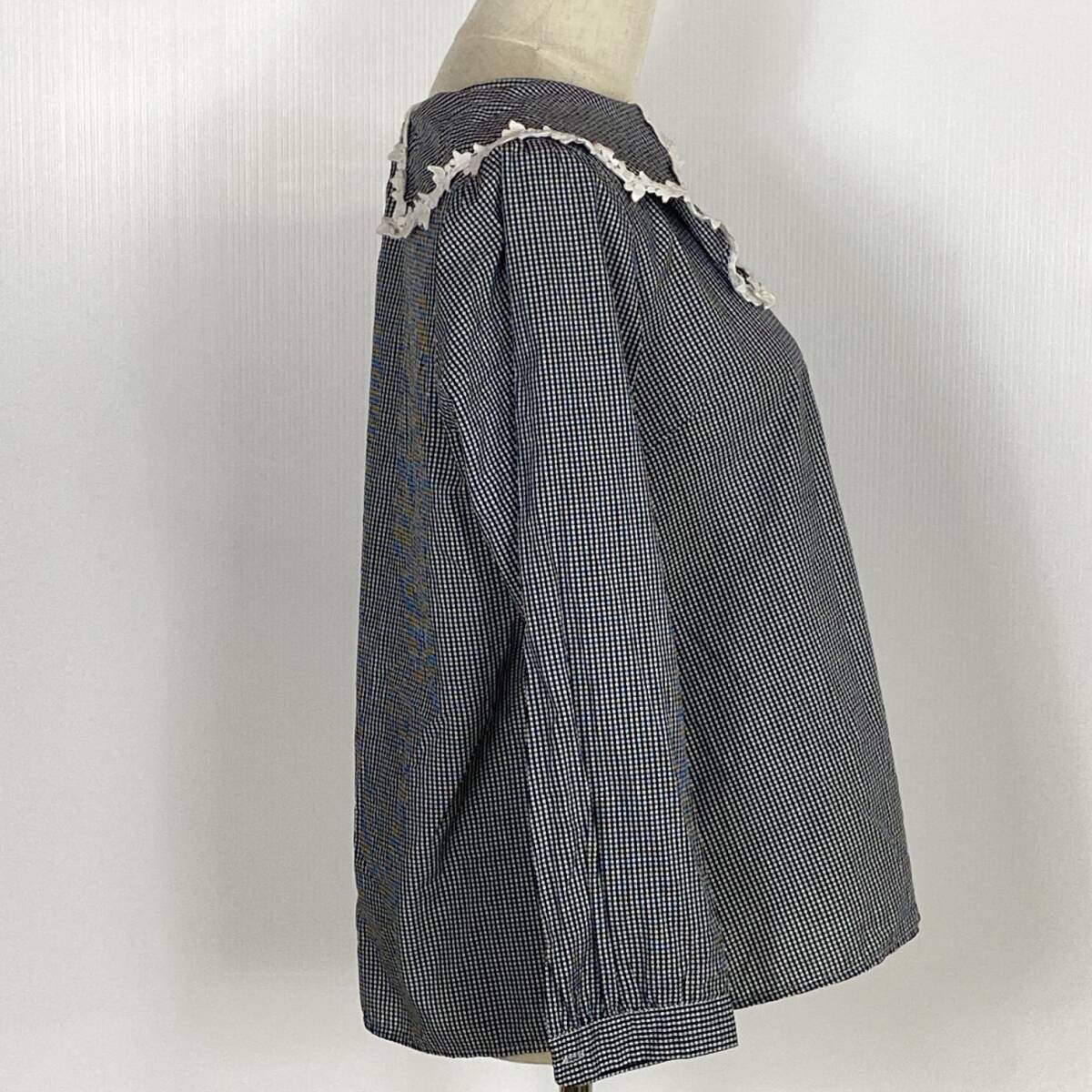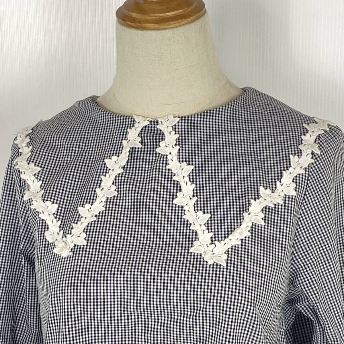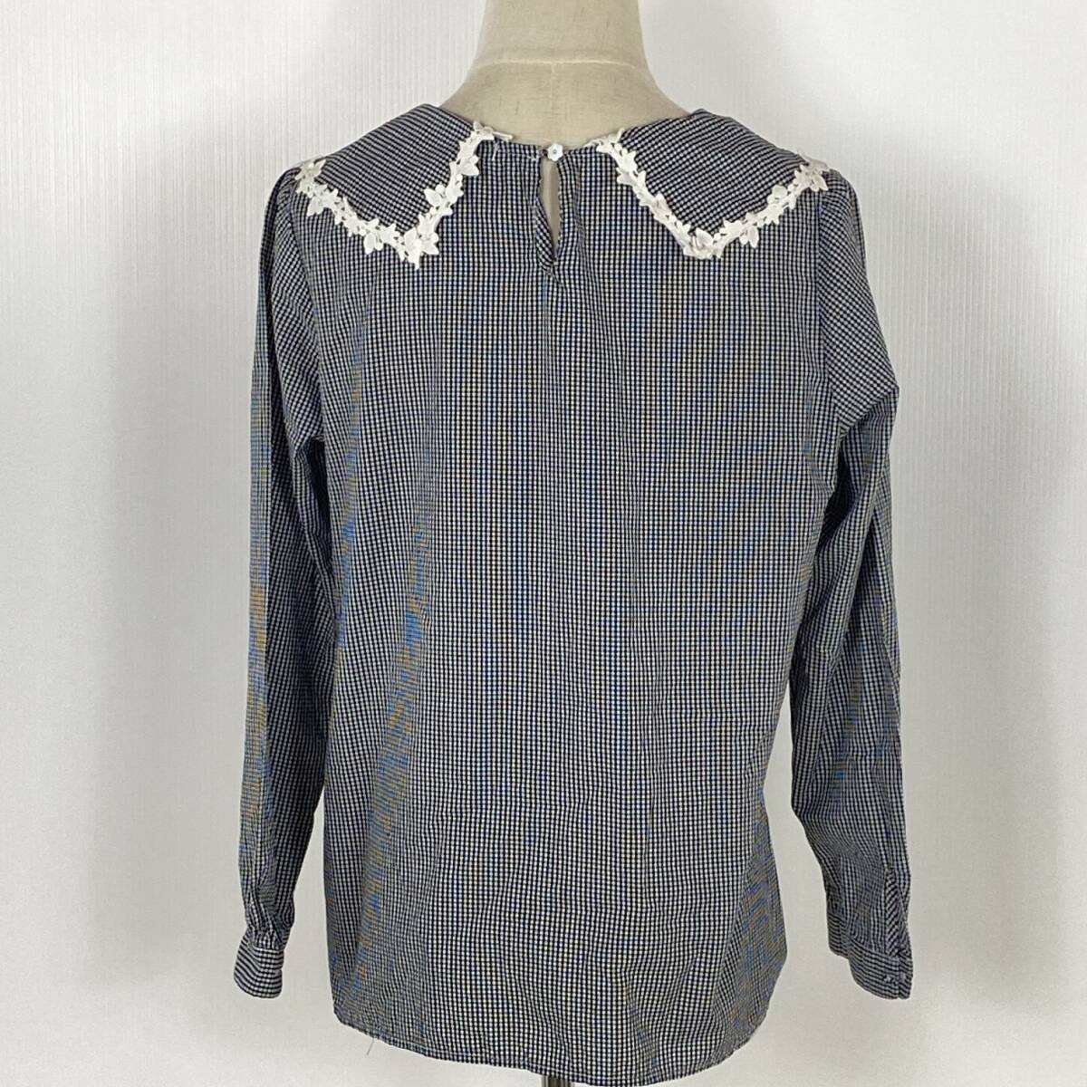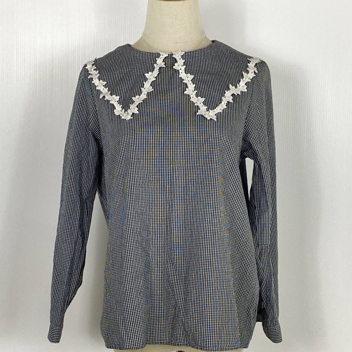 YZ1263 美品 POU DOU DOU プードゥドゥ レディース チェック柄 シャツ 襟花刺繍 Mサイズ かわいい 万能 ゆるふわ ギンガムチェック USED