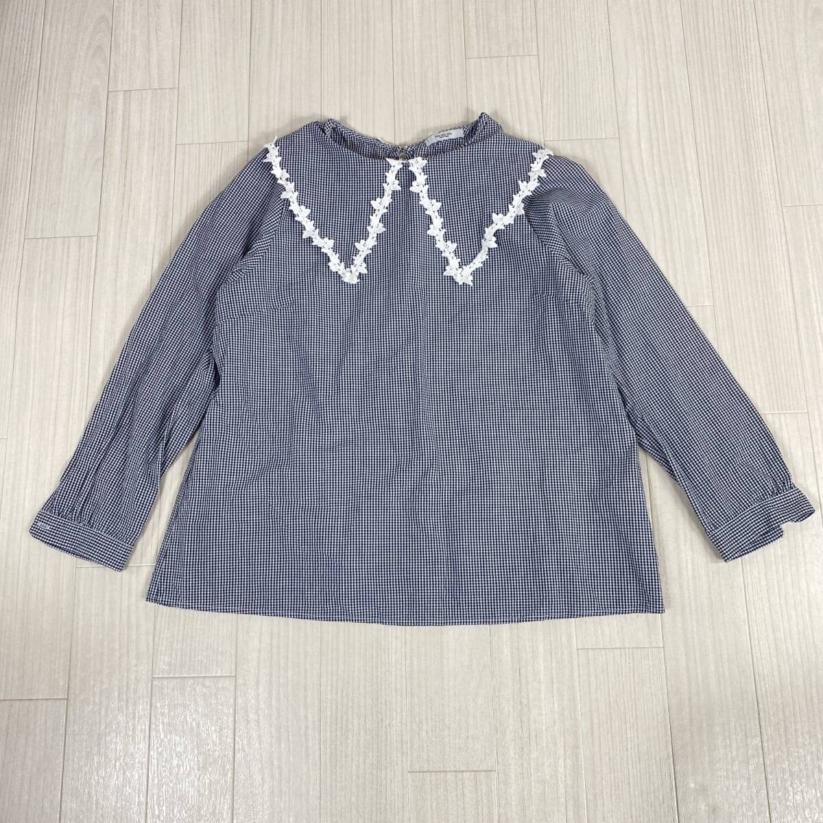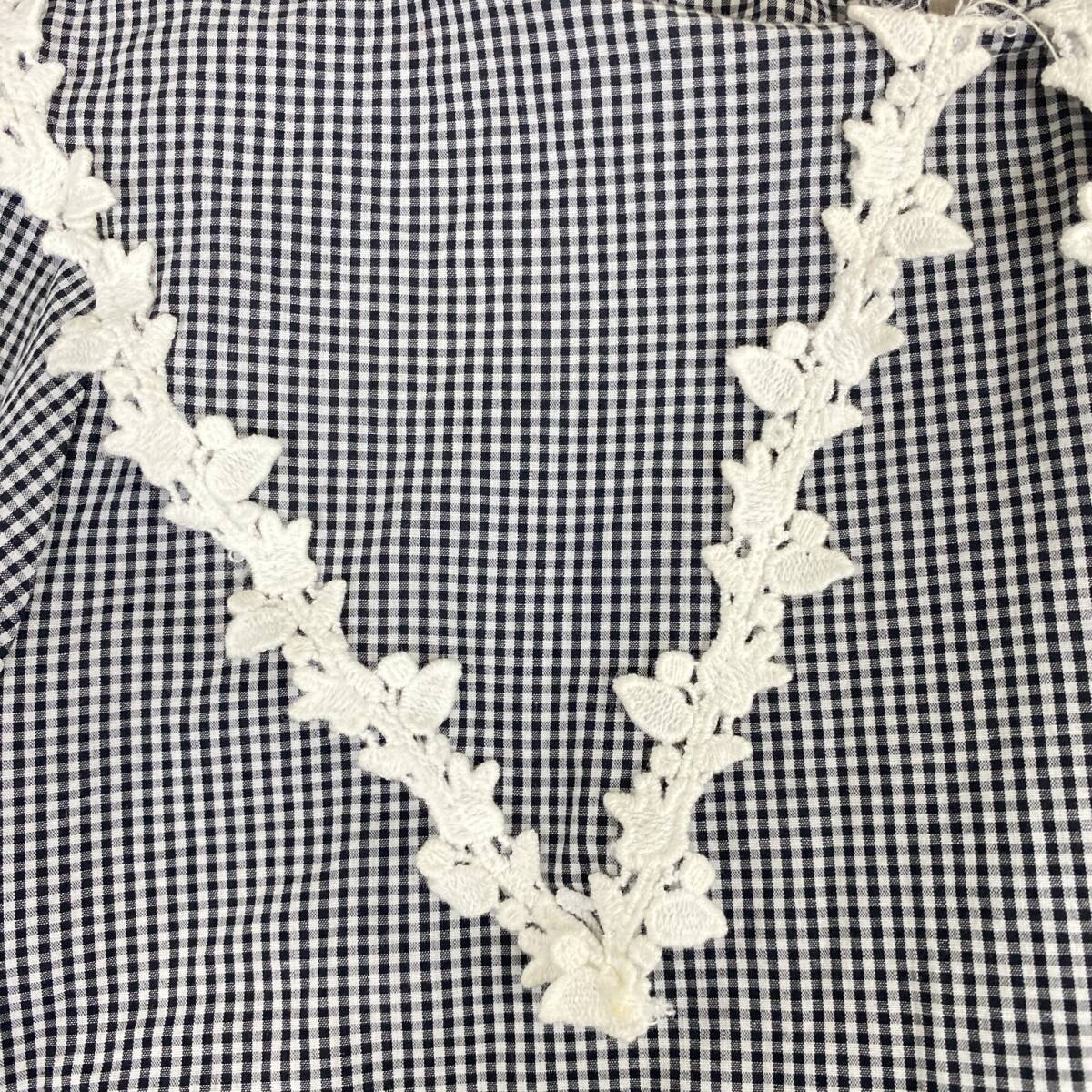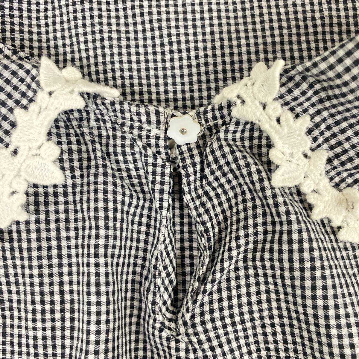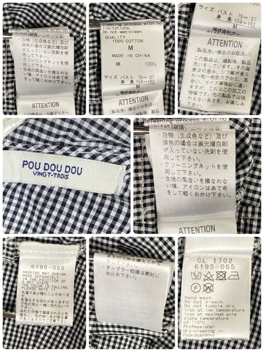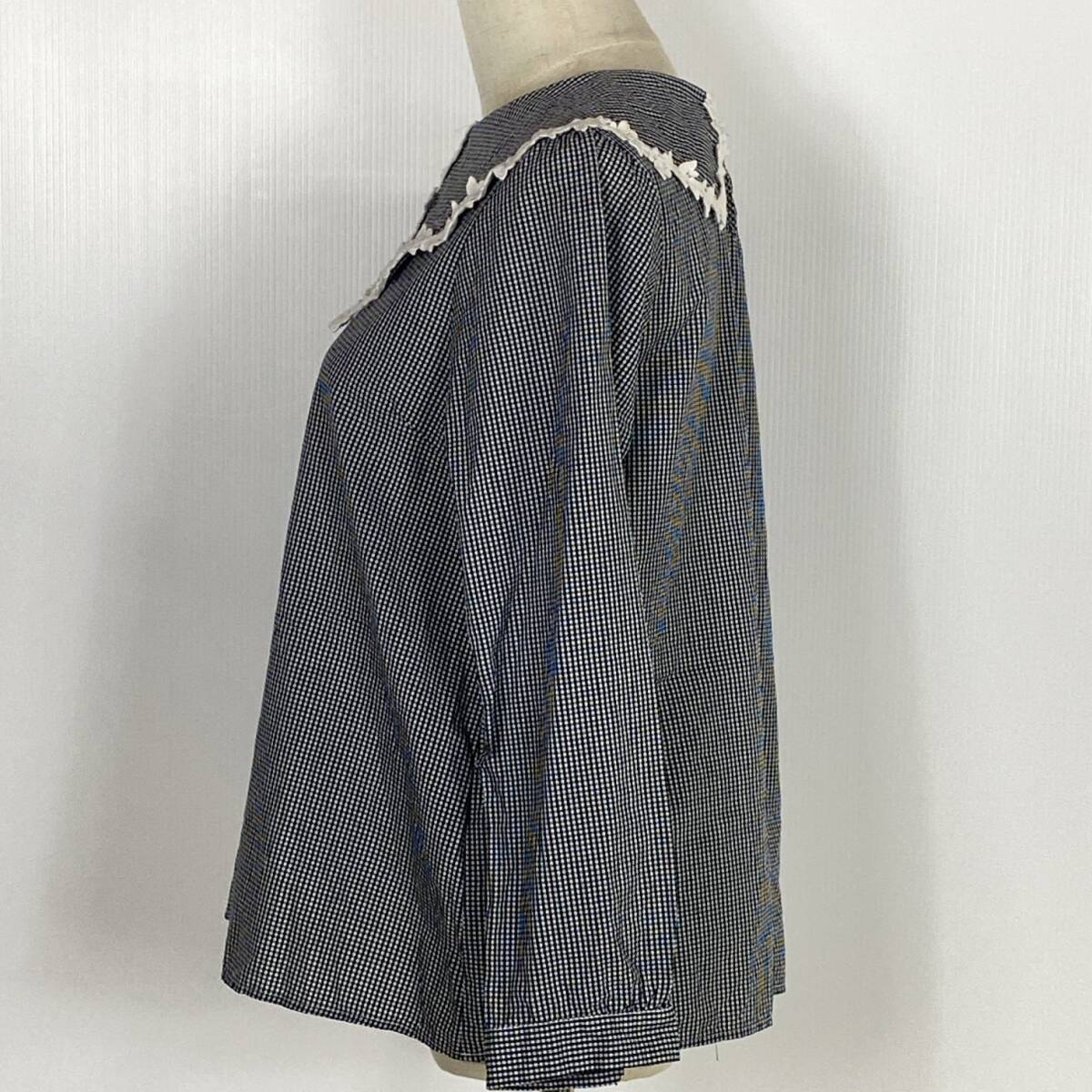 YZ1263 美品 POU DOU DOU プードゥドゥ レディース チェック柄 シャツ 襟花刺繍 Mサイズ かわいい 万能 ゆるふわ ギンガムチェック USED