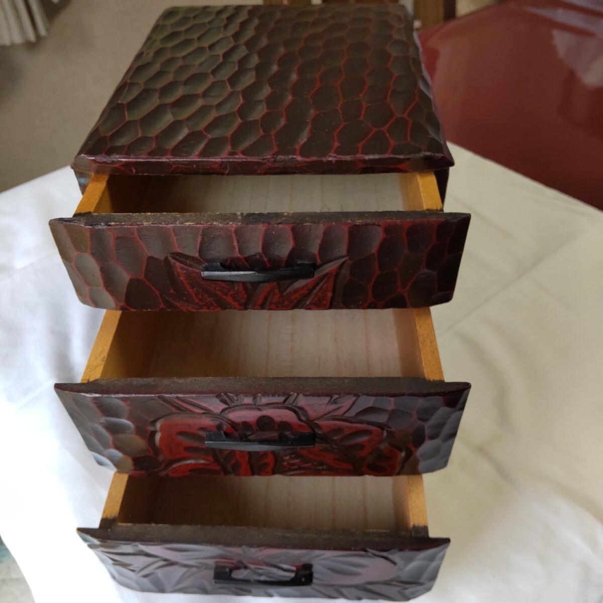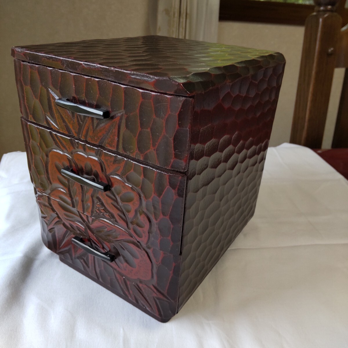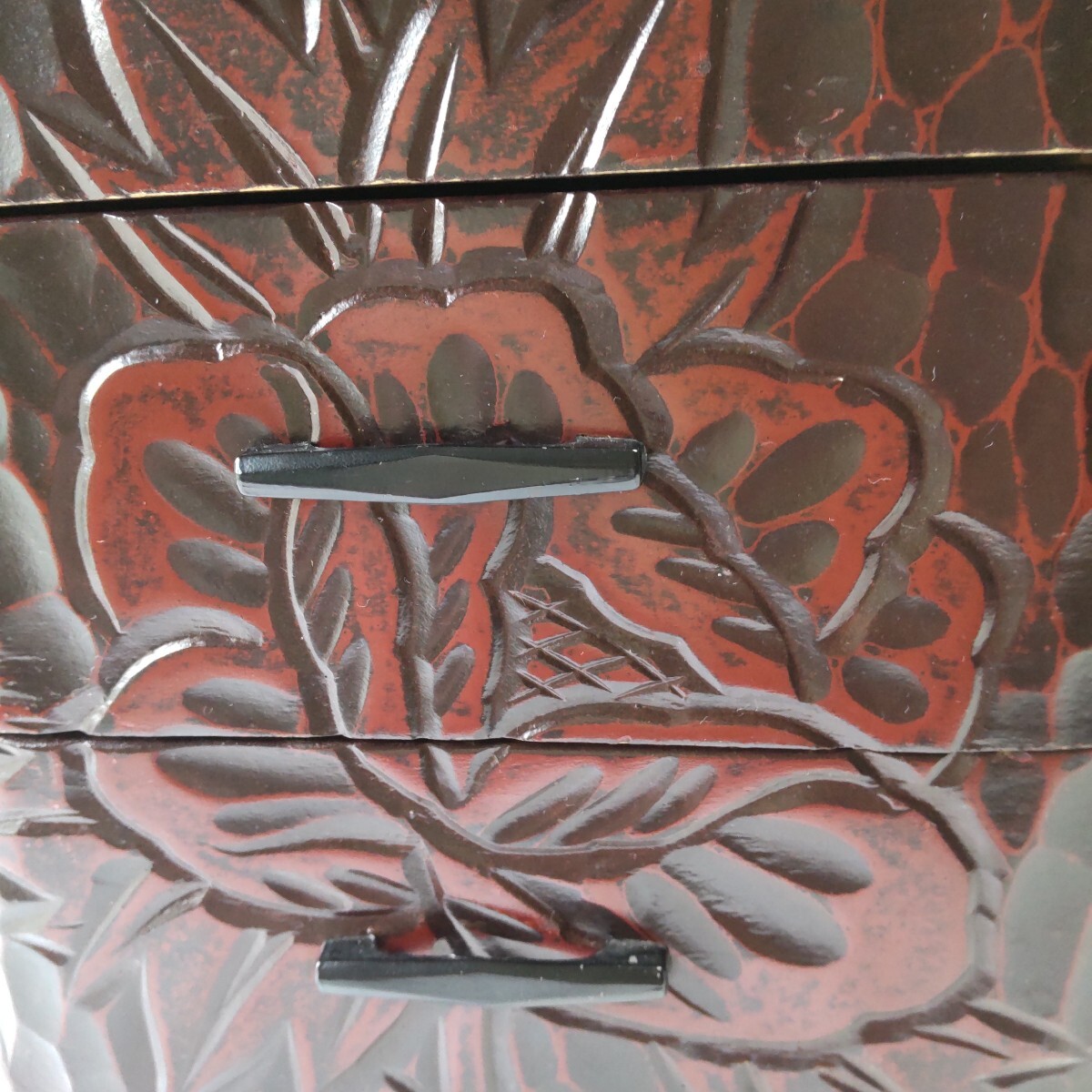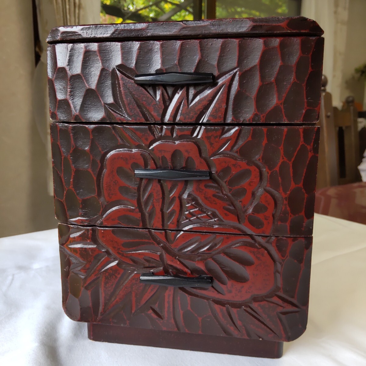 大ぶりの華やか牡丹の花が正面に彫刻された美品。