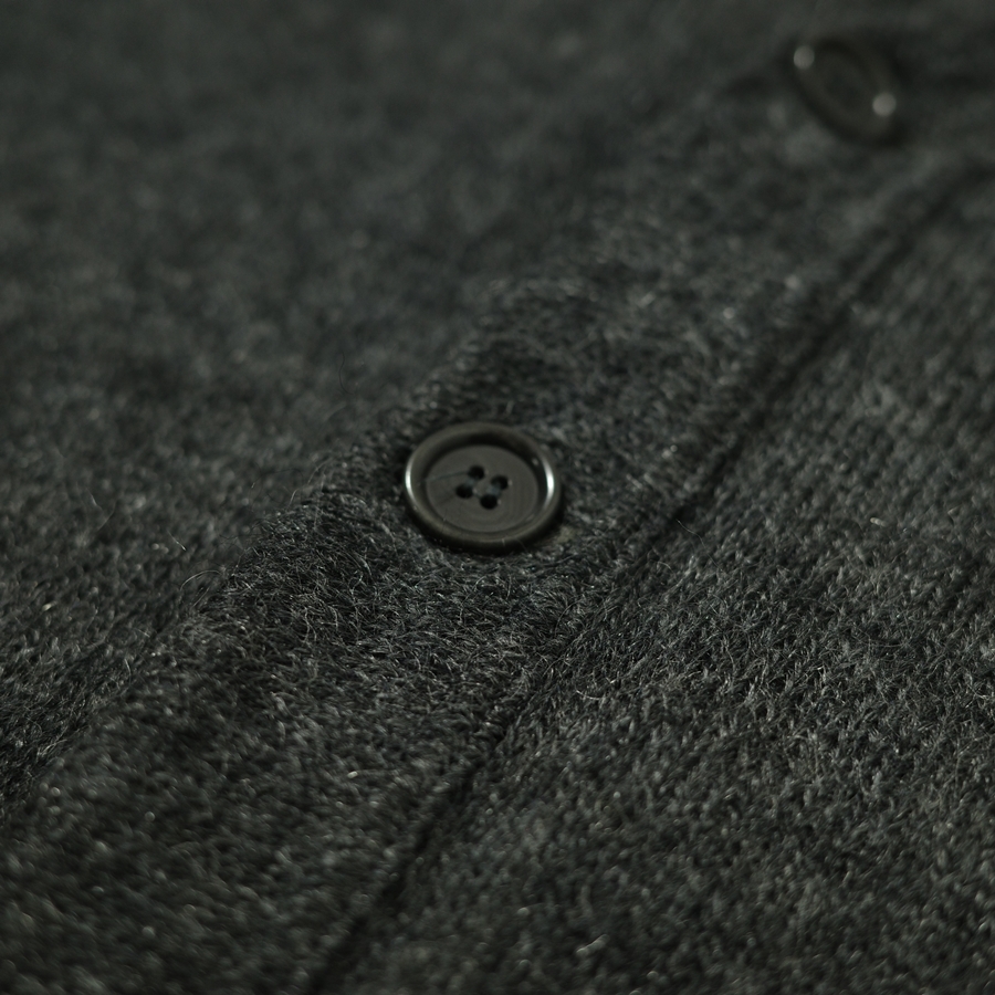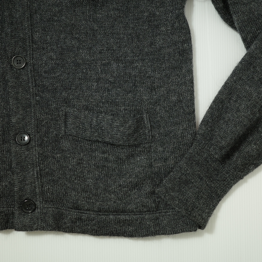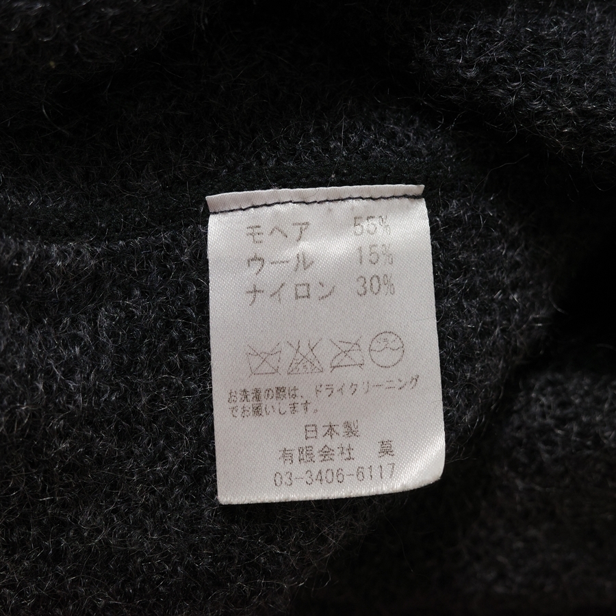 コロナのモヘアカーディガンになります。カラーはダークグレー、素材はモヘア55%、ナイロン30%、ウール15%です。