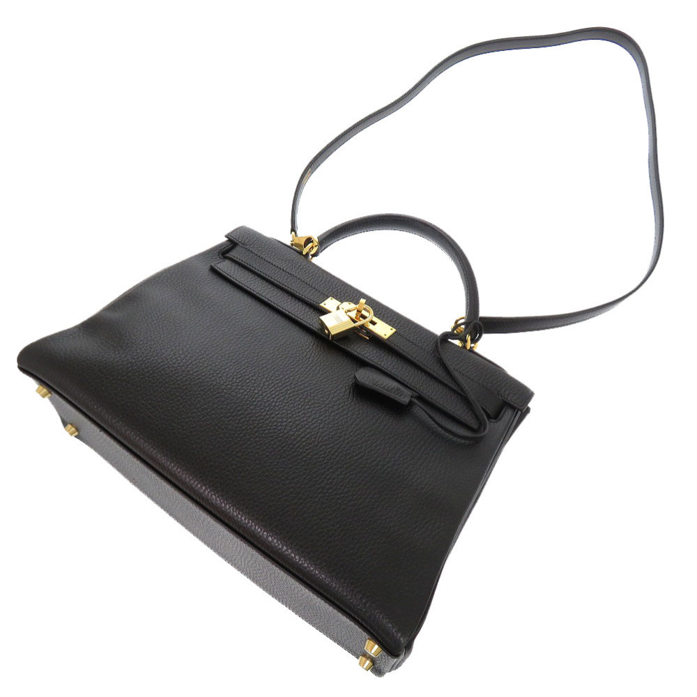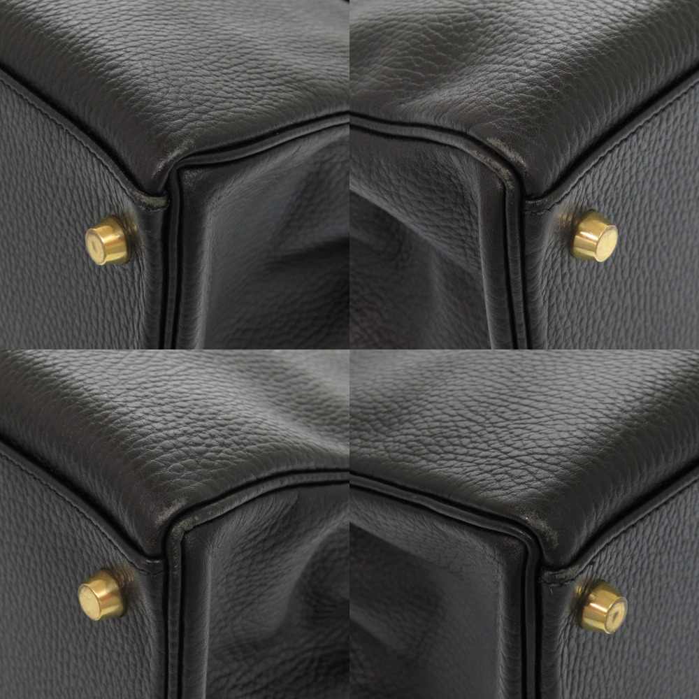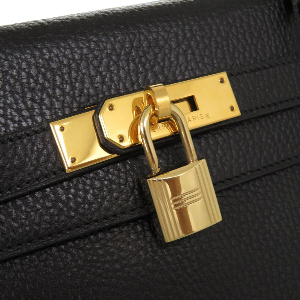 美品 エルメス ケリー32 内縫い アルデンヌ ブラック ゴールド金具 □B刻印 ハンドバッグ 黒 1602 HERMES