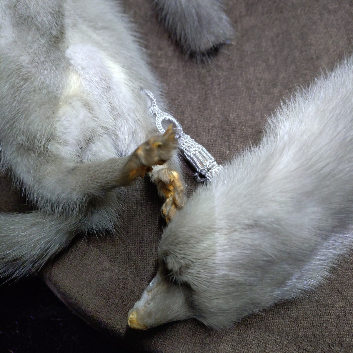 前と後ろに顔がきます。2匹目は、縫いつけてあります。
