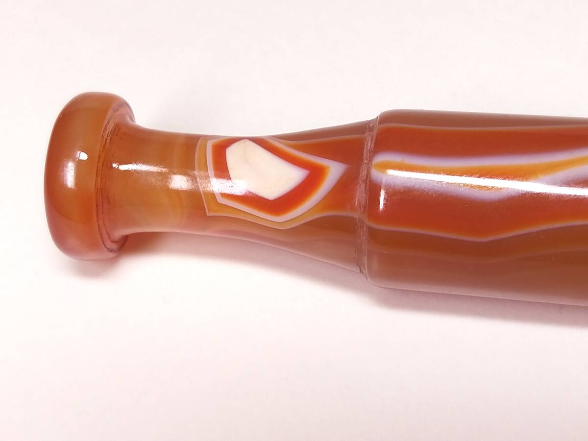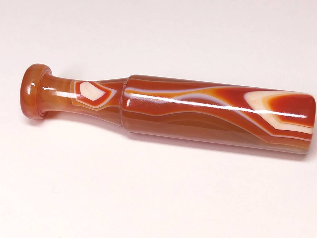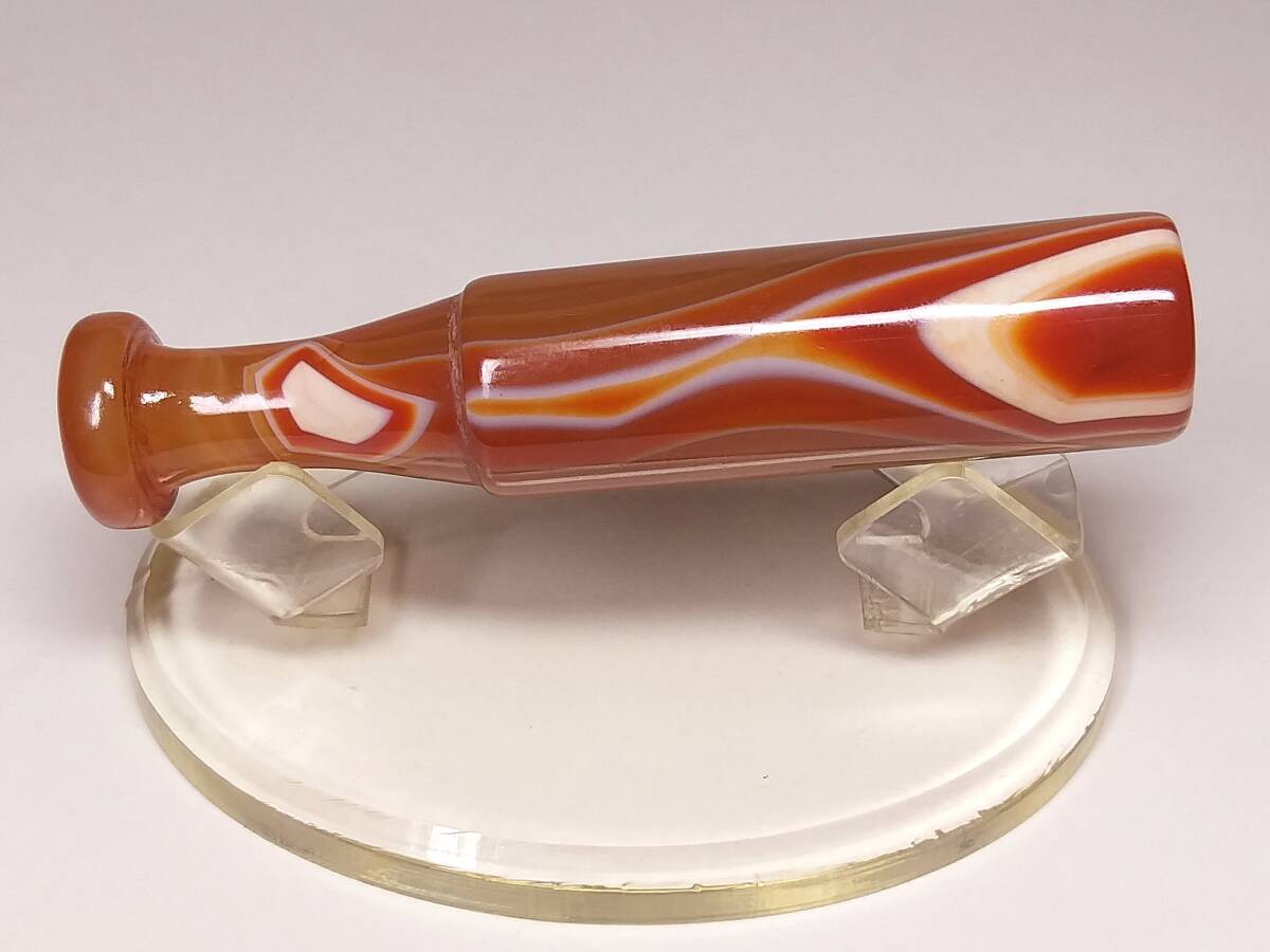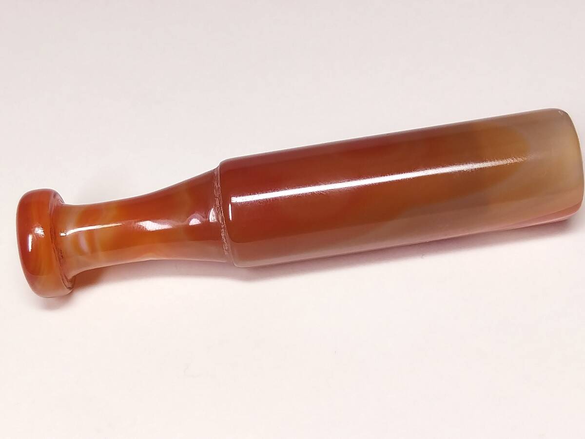 ♪即決【壽】長さ94.6mm天然AAA級極品特大朱赤纏絲水胆瑪瑙高彫パイプ 収蔵未使用品 No3