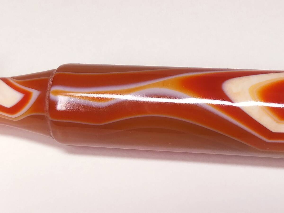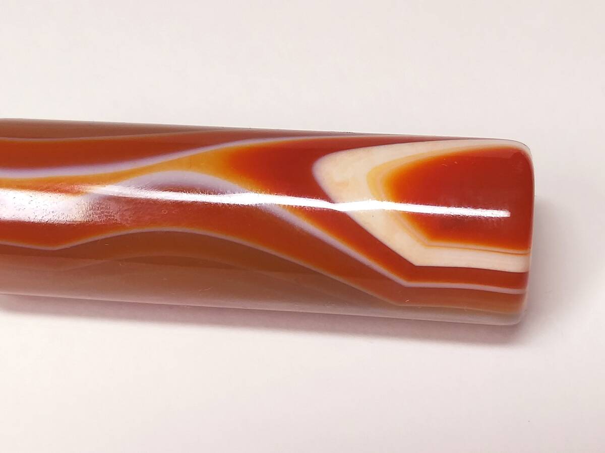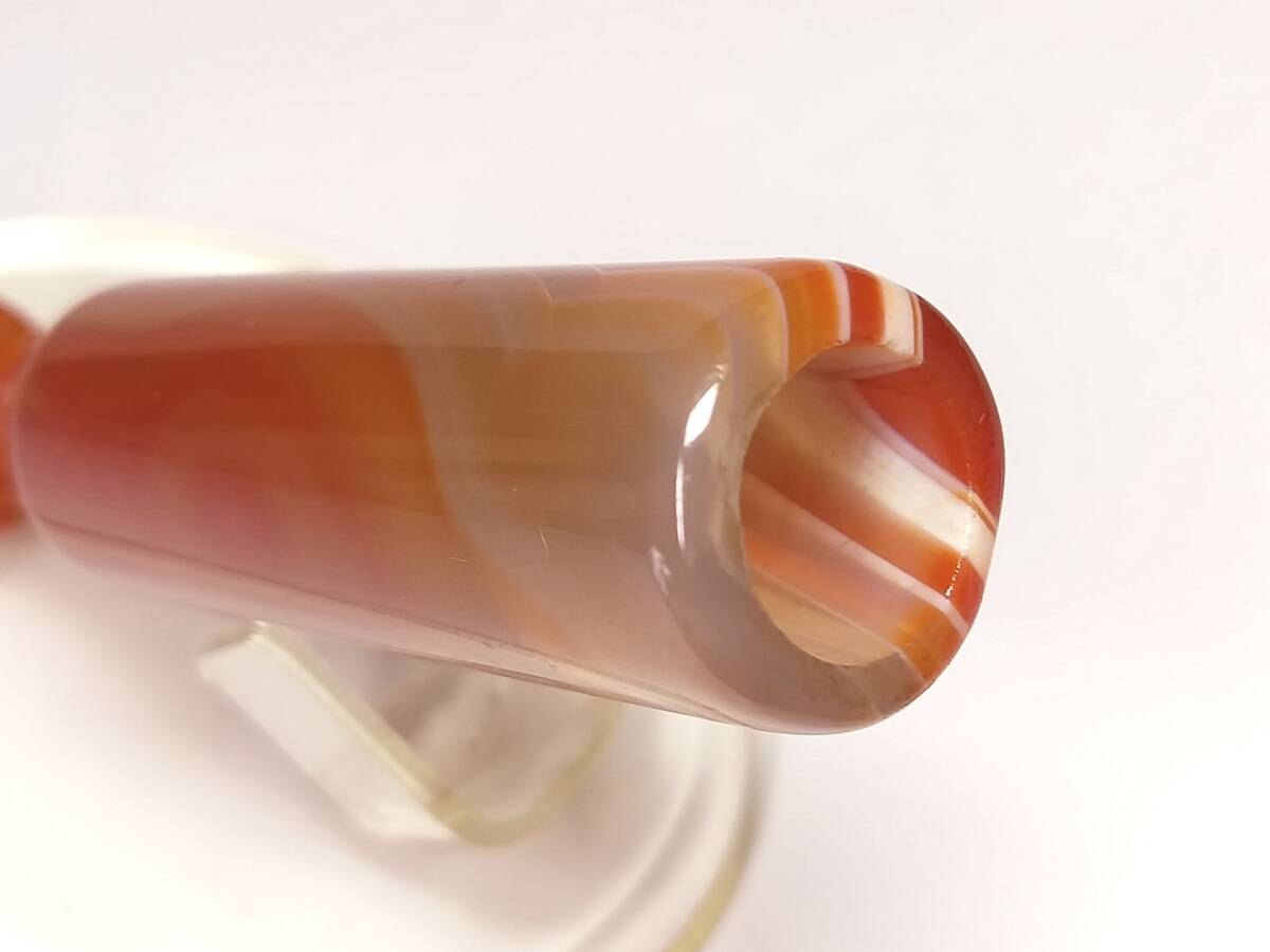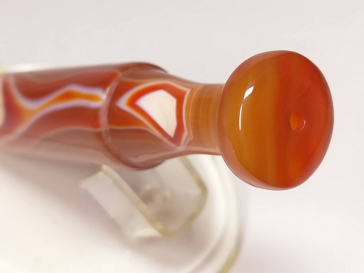 ♪即決【壽】長さ94.6mm天然AAA級極品特大朱赤纏絲水胆瑪瑙高彫パイプ 収蔵未使用品 No3
