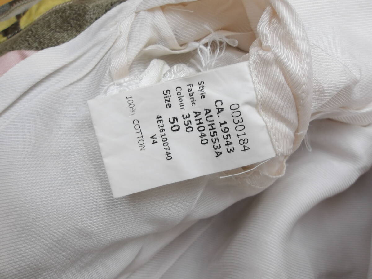 数回しか着てませんが、経年変化で襟裏の裏地の汚れ、左袖の裏地に時計革バンドの色移りなどがあります。内側のポケットにあるボタンを留めるタブが壊れています。洗っていますので綺麗だと思います。USEDなので理解のない人や神経質な方は入札はお控えください。襟元のゴム製ブランドタグは外しています。右胸のポケットに入れています。