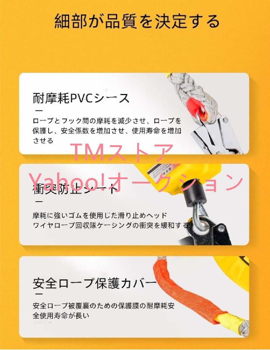 ◆【精緻な細部】昇降用 ベルブロックは耐摩耗PVCシースを有し、ロープとフック間の摩耗を減少し、ロープを保護し、安全係数を増加し、使用寿命を増加する、耐摩耗性のゴム滑り止めヘッドを使用して、ワイヤロープ回収隊のハウジングの衝突を緩和する、安全ロープ保護カバーは、安全ロープバッグ襄の1層の保護膜の耐摩耗安全使用寿命が長い。
