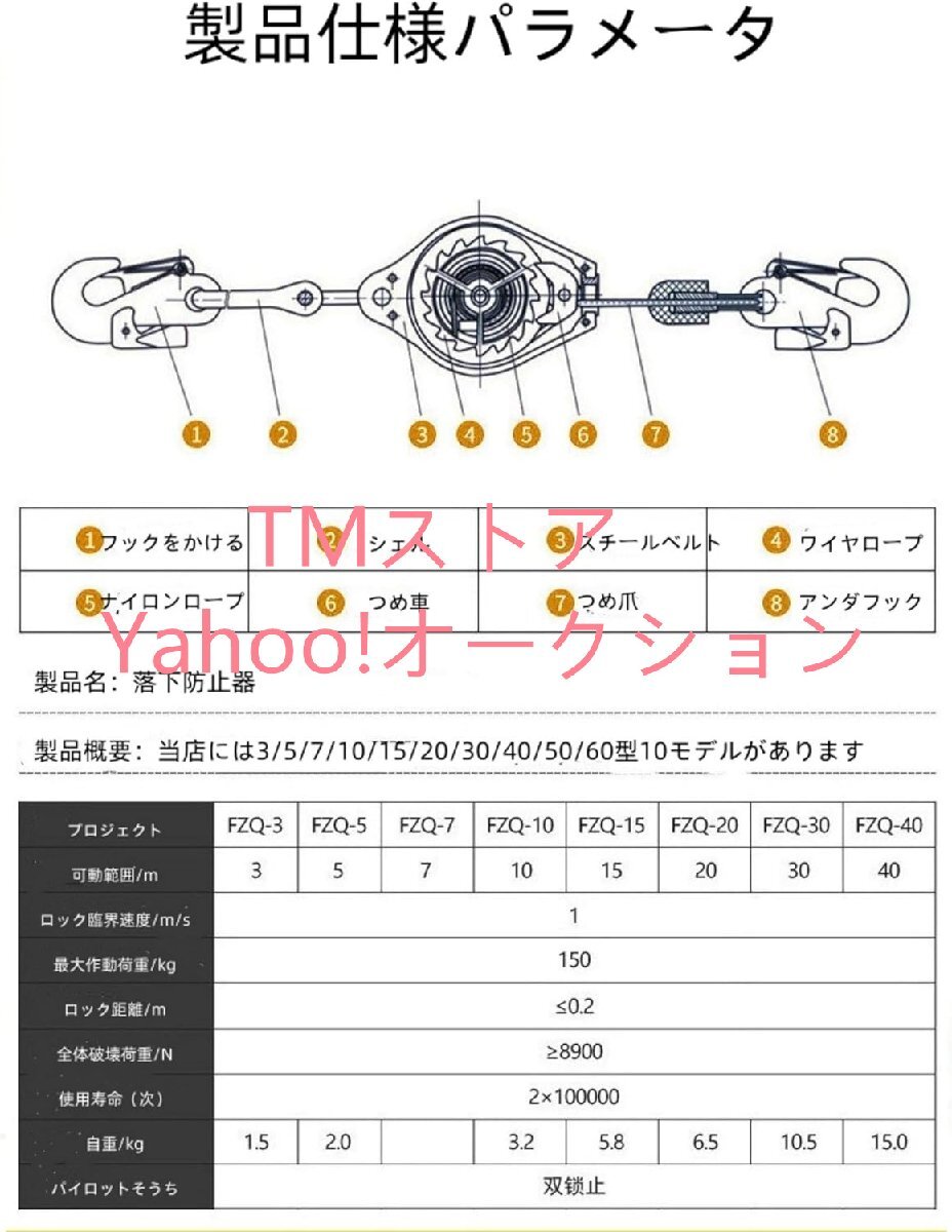 ◆【難燃性安全ロープ】安全ブロック器は耐摩耗性、耐衝撃性があり、高強度変色ナイロン材質は比較的強い耐摩耗性、耐衝撃性を持っている 落下防止ブロックは高強度合金鋼筐体を有し 耐摩耗耐落下高温焼付塗料の使用はより安全である、安全ロープは合金鋼コネクタを用いてフックを鍛造し 慣性 リールは合金鋼D型アンカーを用いてハウジングと接続する荷重力が強く
