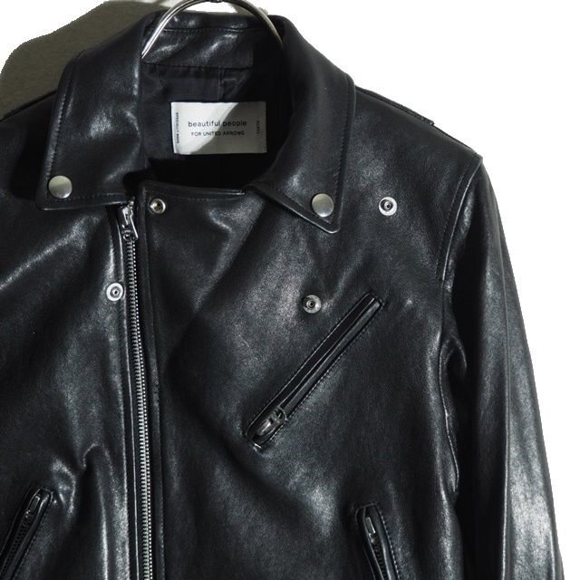 P0800H3 ▼ビューティフルピープル × ユナイテッドアローズ▼ コンパクト レザー ライダースジャケット ブラック 140 / 羊革 黒 秋冬