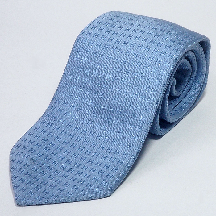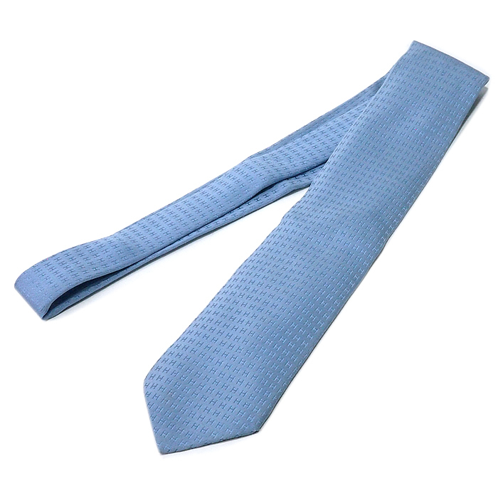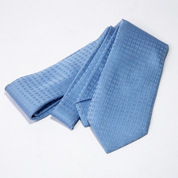 富士屋◆ エルメス HERMES シルク ネクタイ ブルーグレー H柄