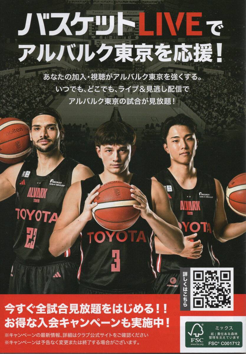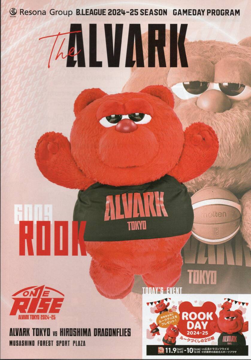 Bリーグ アルバルク東京 2024-25 ゲームプログラム 第8節 vs 広島ドラゴンフライズ
